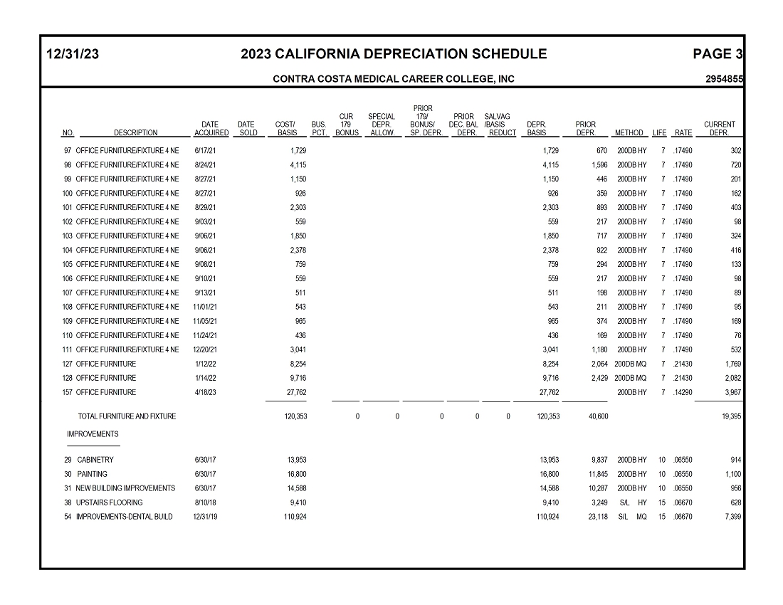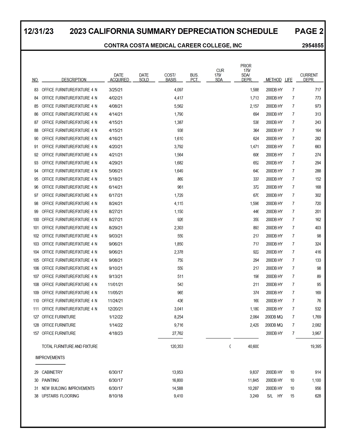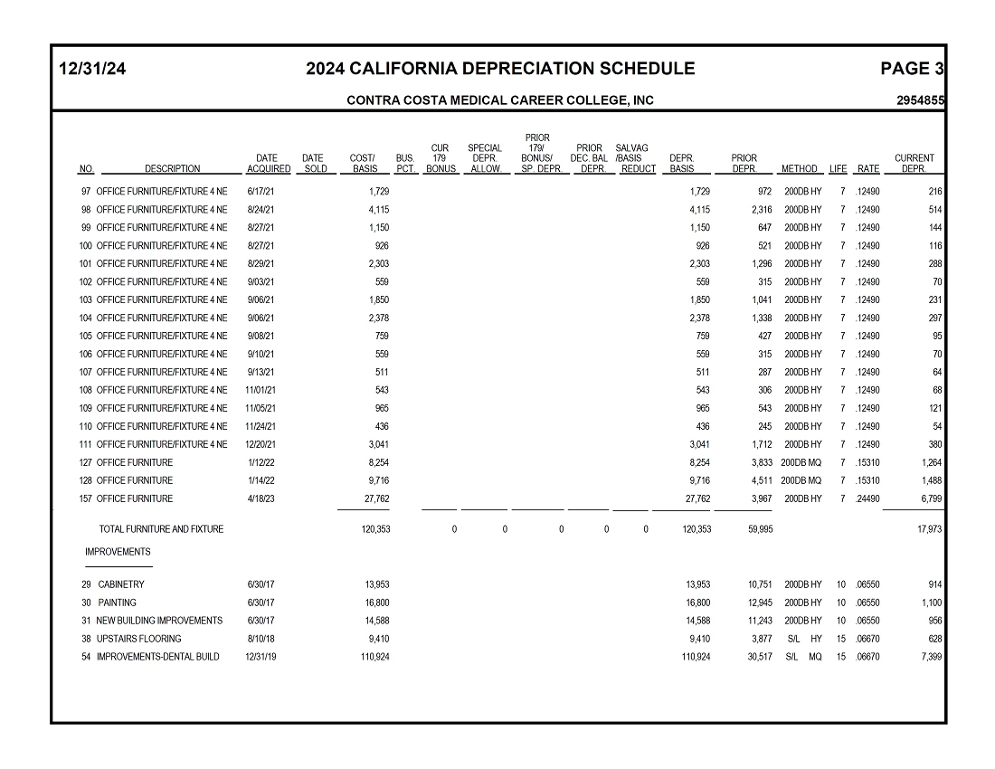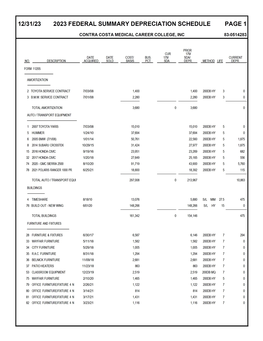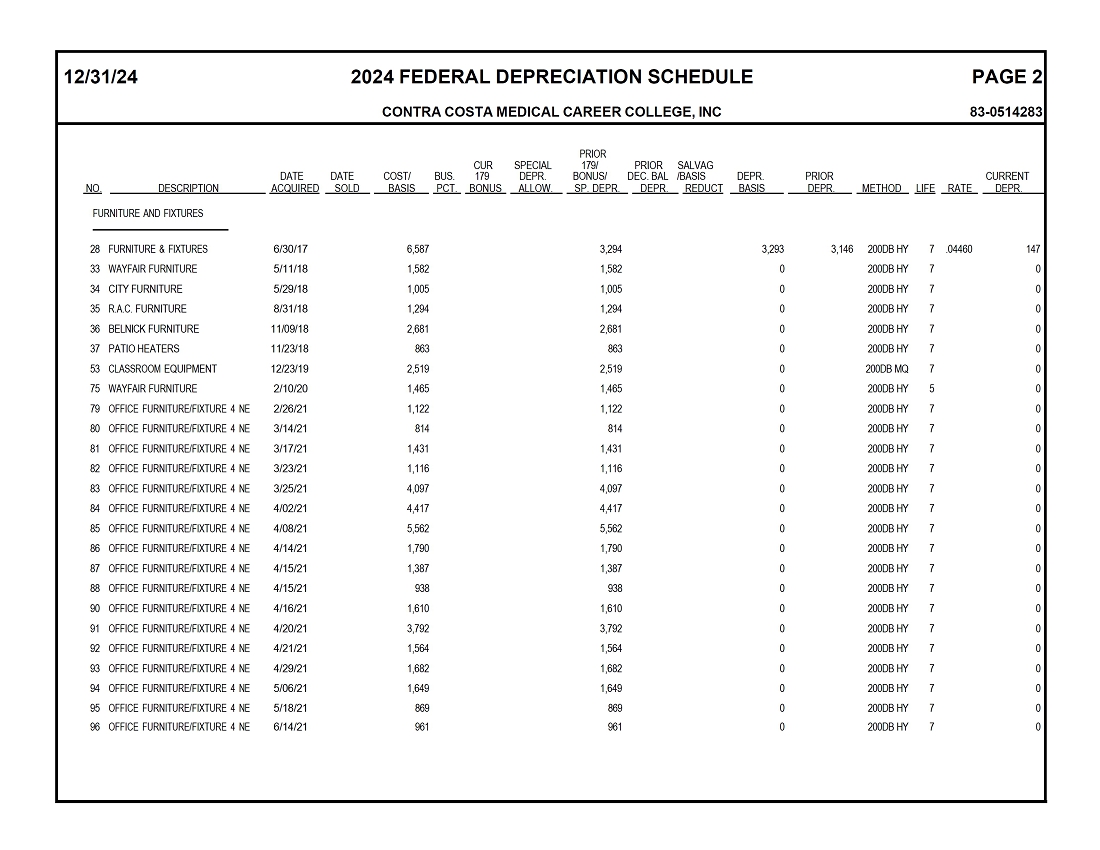 Purchased Assets” means, other than Excluded Assets, all right, title, and interest in all tangible and intangible assets of Sellers, including, without limitation, Accounts Receivables (except for the Excluded Receivable), security deposits, inventory, supplies (including professional, college, and office supplies, testers, wholesale products, and retail products), equipment, computer equipment, fixed assets, Business Records (except any records included in the Excluded Assets), curricula, work-product, contracts, leases and leasehold improvements, furniture, fixtures, equipment, prepaid expenses, licenses, advertising material, insurance proceeds, permits, signage, software, telephone numbers, website URLs, domain names, goodwill, the use of all names under which Sellers do business other than as included in the Excluded Assets, all Intellectual Property Rights, wherever located and existing as of the Closing and the going concern value associated with them. Exhibit B sets forth equipment, furniture and fixtures of Sellers used in the operation of the College as of December 31, 2023.