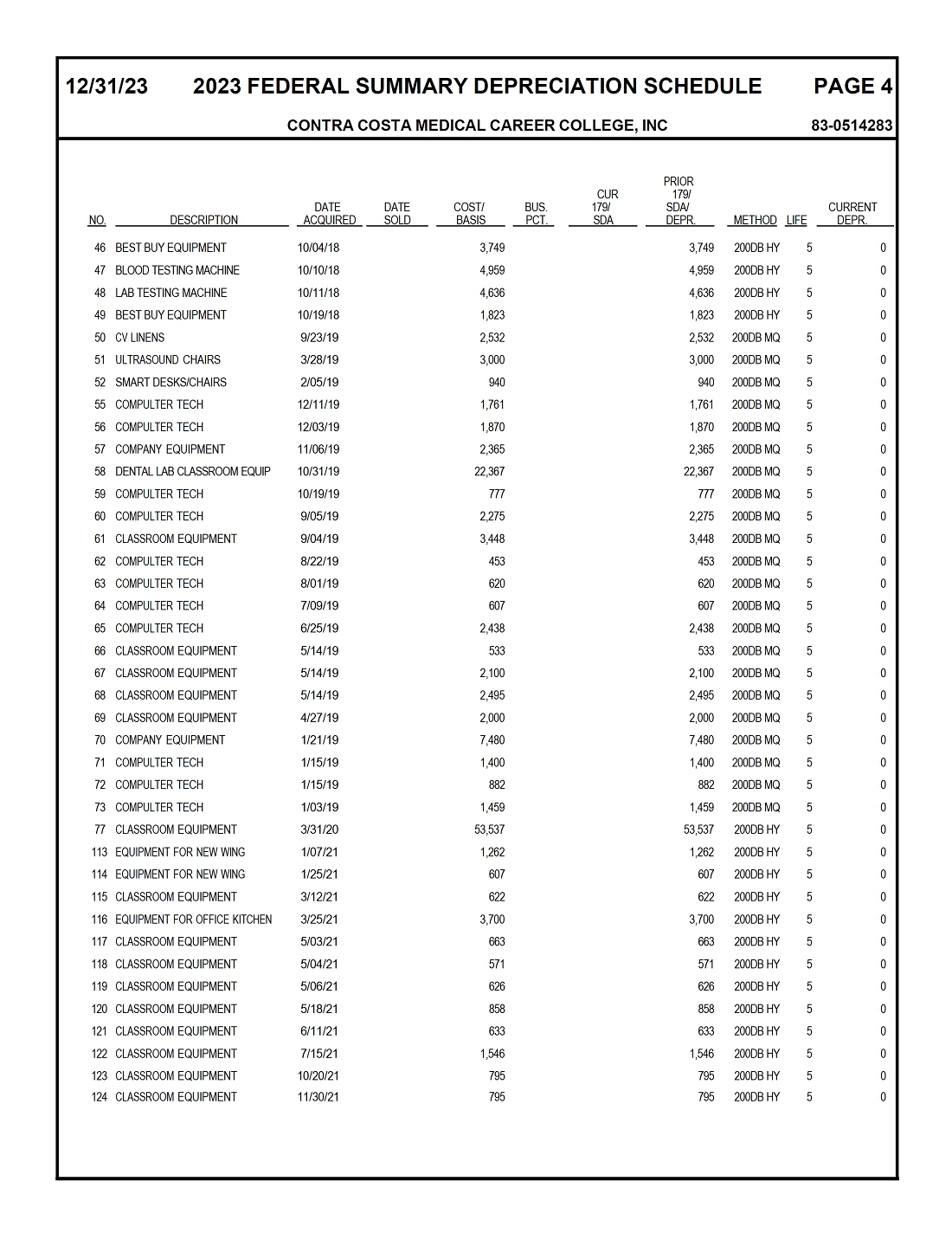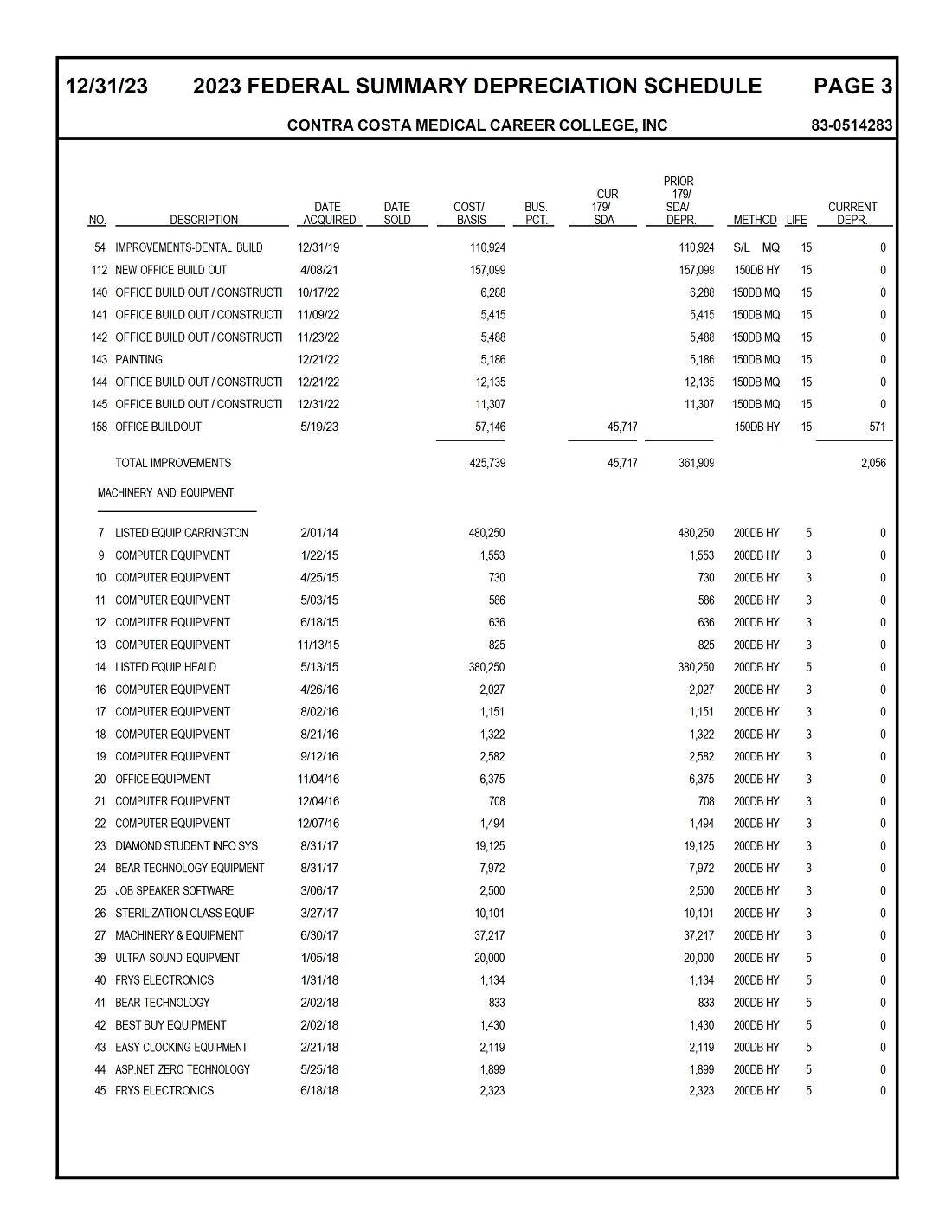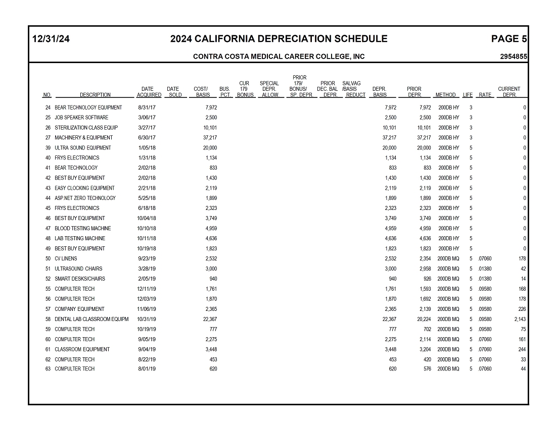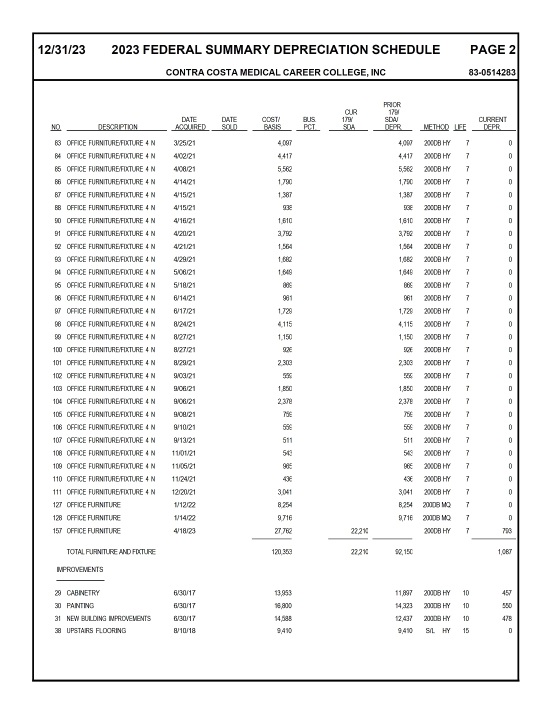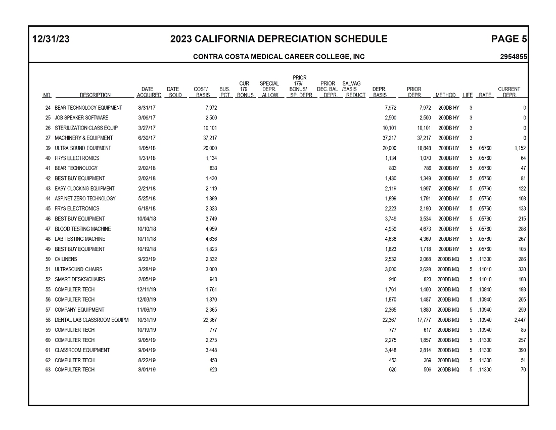 Purchased Assets” means, other than Excluded Assets, all right, title, and interest in all tangible and intangible assets of Sellers, including, without limitation, Accounts Receivables (except for the Excluded Receivable), security deposits, inventory, supplies (including professional, college, and office supplies, testers, wholesale products, and retail products), equipment, computer equipment, fixed assets, Business Records (except any records included in the Excluded Assets), curricula, work-product, contracts, leases and leasehold improvements, furniture, fixtures, equipment, prepaid expenses, licenses, advertising material, insurance proceeds, permits, signage, software, telephone numbers, website URLs, domain names, goodwill, the use of all names under which Sellers do business other than as included in the Excluded Assets, all Intellectual Property Rights, wherever located and existing as of the Closing and the going concern value associated with them. Exhibit B sets forth equipment, furniture and fixtures of Sellers used in the operation of the College as of December 31, 2023.