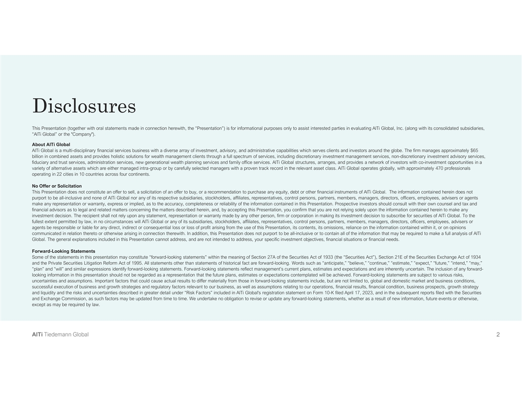 Exhibit 99.1 Investor Presentation | April 2023 AlTi Tiedemann Global 1