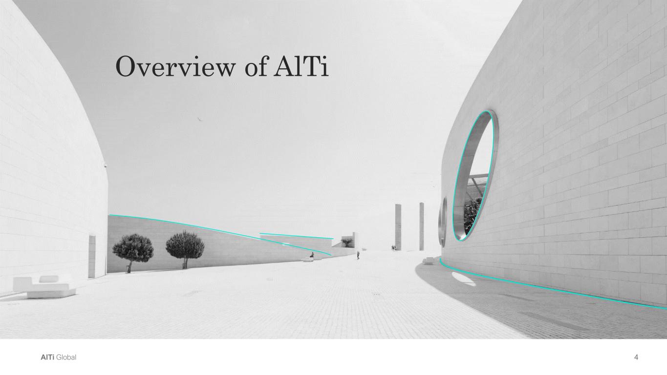 3AlTi Global Forward-Looking Statements Some of the statements in this press release may constitute “forward-looking statements” within the meaning of Section 27A of the Securities Act of 1933 (the “Securities Act”), Section 21E of the Securities Exchange Act of 1934 and the Private Securities Litigation Reform Act of 1995. All statements other than statements of historical fact are forward- looking. Words such as “anticipate,” “believe,” “continue,” “estimate,” “expect,” “future,” “intend,” “may,” “plan” and “will” and similar expressions identify forward-looking statements. Forward-looking statements reflect management’s current plans, estimates and expectations and are inherently uncertain. The inclusion of any forward-looking information in this press release should not be regarded as a representation that the future plans, estimates or expectations contemplated will be achieved. Forward-looking statements are subject to various risks, uncertainties and assumptions. Important factors that could cause actual results to differ materially from those in forward-looking statements include, but are not limited to, global and domestic market and business conditions, successful execution of business and growth strategies and regulatory factors relevant to our business, as well as assumptions relating to our operations, financial results, financial condition, business prospects, growth strategy and liquidity and the risks and uncertainties described in greater detail under “Risk Factors” included in AlTi’s registration statement on Form 10-K filed March 22, 2024, and in the subsequent reports filed with the Securities and Exchange Commission (the “SEC”), as such factors may be updated from time to time. We undertake no obligation to revise or update any forward-looking statements, whether as a result of new information, future events or otherwise, except as may be required by law. Financial Information The financial information and data contained in this Presentation is unaudited and does not conform to Regulation S-X promulgated under the Securities Act. Accordingly, such information and data may not be included in, may be adjusted in or may be presented differently in, any registration statement that may be filed by AlTi Global. Due to rounding, numbers presented throughout this Presentation may not add up precisely to the totals provided and percentages may not precisely reflect the absolute figures. Industry and Market Data Certain information contained in this Presentation relates to or is based on studies, publications, surveys and AlTi Global’s own internal estimates and research. In addition, all of the market data included in this Presentation involves a number of assumptions and limitations, and there can be no guarantee as to the accuracy or reliability of such assumptions. Finally, while AlTi Global believes its internal research is reliable, such research has not been verified by any independent source and none of AlTi Global or any of its affiliates nor any of their respective control persons, officers, directors, employees or representatives make any representation or warranty with respect to the accuracy of such information. Trademarks This Presentation may contain trademarks, service marks, trade names and copyrights of other companies, which are the property of their respective owners. Solely for convenience, some of the trademarks, service marks, trade names and copyrights referred to in this Presentation may be listed without the TM, SM © or ® symbols, but AlTi Global, will assert, to the fullest extent under applicable law, the rights of the applicable owners, if any, to these trademarks, service marks, trade names and copyrights. Use of Non-GAAP Financial Measures The non-GAAP financial measures contained in this presentation (including, without limitation, Adjusted Net Income, Adjusted EBITDA and EBITDA) are not GAAP measures of AlTi Global’s financial performance or liquidity and should not be considered as alternatives to net income (loss) as a measure of financial performance or cash flows from operations as measures of liquidity, or any other performance measure derived in accordance with GAAP. A reconciliation of such non-GAAP measures to their most directly comparable GAAP measure is included in the Appendix of this presentation. You are encouraged to evaluate each adjustment to non-GAAP financial measures and the reasons management considers it appropriate for supplemental analysis. AlTi Global believes that the use of these non-GAAP financial measures provides an additional tool for investors to use in evaluating ongoing operating results and trends. Our presentation of these measures should not be construed as an inference that our future results will be unaffected by unusual or non-recurring items. In addition, these measures may not be comparable to similarly titled measures used by other companies in our industry or across different industries. Forward-looking Non-GAAP The Company is not able to reconcile its forward-looking non-GAAP estimates of Adjusted EBITDA margin without unreasonable effort because of the inherent difficulty of accurately forecasting the occurrence and financial impact of the various adjusting items necessary for such reconciliation that have not yet occurred, are out of its control, or cannot be reasonably predicted, which could have a material impact on its future GAAP financial results. Notes and Important Disclosures