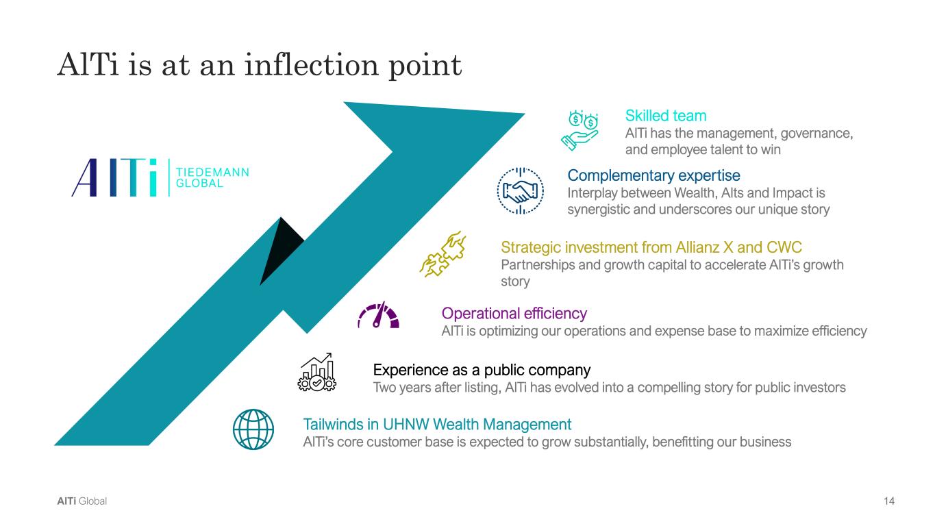 13AlTi Global Seattle Portland San Francisco Dallas Miami Minneapolis Washington, D.C. Palm Beach Wilmington New York Lisbon Lugano Geneva Zurich Milan London Paris Singapore Hong Kong Global Footprint Unique global footprint Long-term expansion plan leveraging global footprint 8 Countries 19 Cities Market Opportunity Significant market size for UHNW clients Partner Footprint Strong AlTi and partner footprints Market Entry Low regulatory barriers and/or limited competition Scale Augment existing market presence or enter new markets with a clear path to meaningful scale AlTi Presence Global Headquarters Note: Information as of December 31, 2024 Hamburg Announced AlTi Presence in 2025