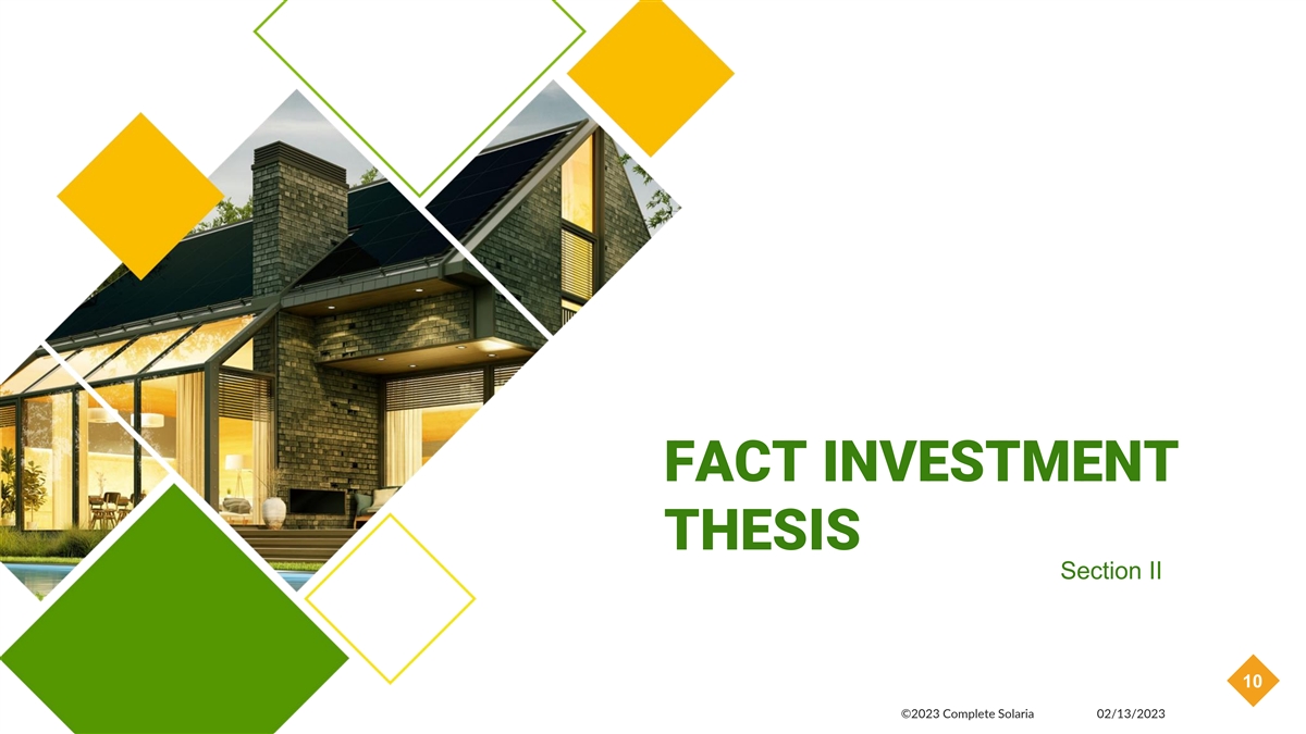 FACT INVESTMENT THESIS Section II 10 ©2023 Complete Solaria 02/13/2023 10