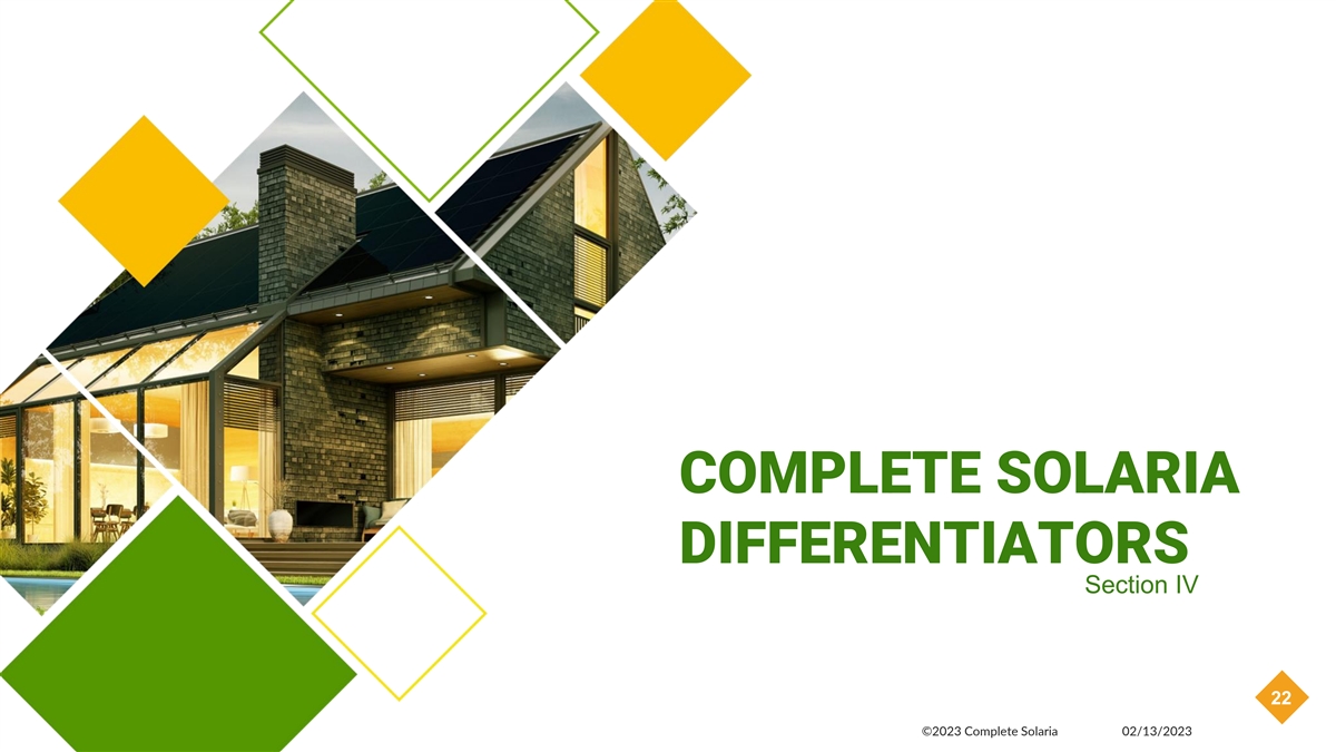 COMPLETE SOLARIA DIFFERENTIATORS Section IV 22 ©2023 Complete Solaria 02/13/2023 22