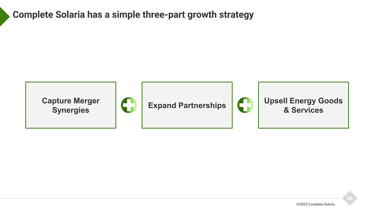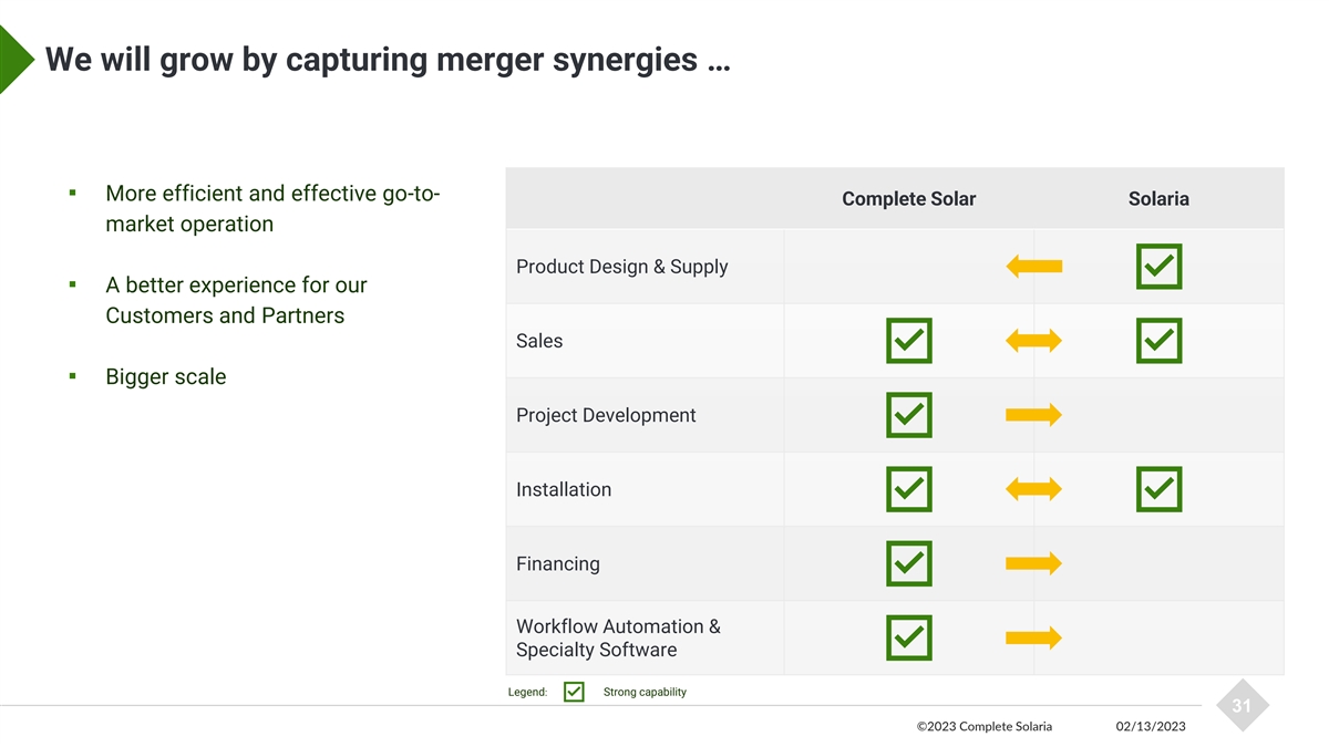 Complete Solaria has a simple three-part growth strategy Capture Merger Upsell Energy Goods Expand Partnerships Synergies & Services 30 ©2023 Complete Solaria