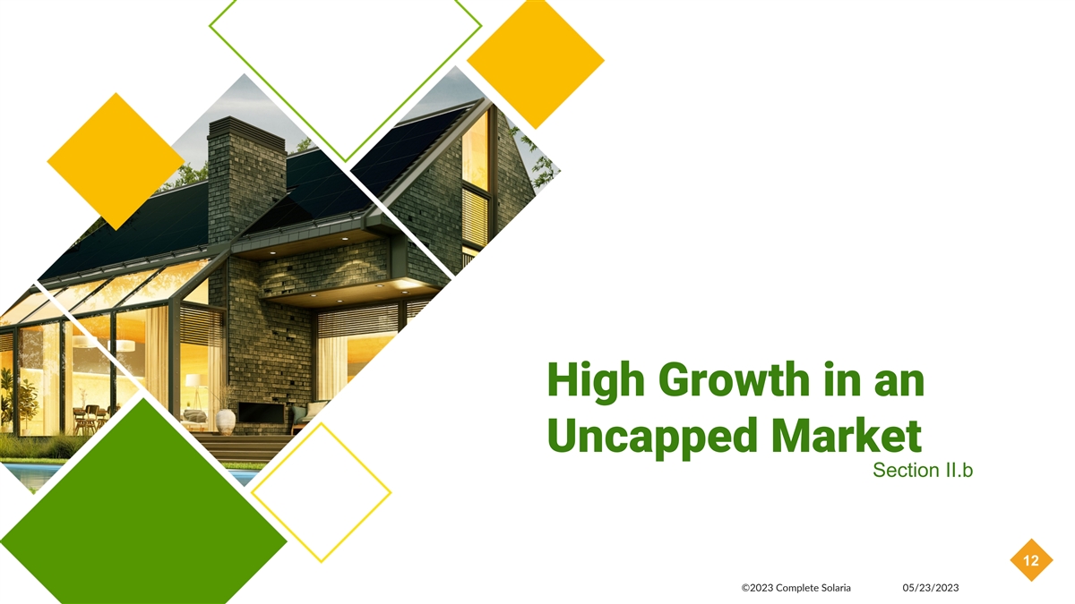 High Growth in an Uncapped Market Section II.b 12 ©2023 Complete Solaria 05/23/2023 12