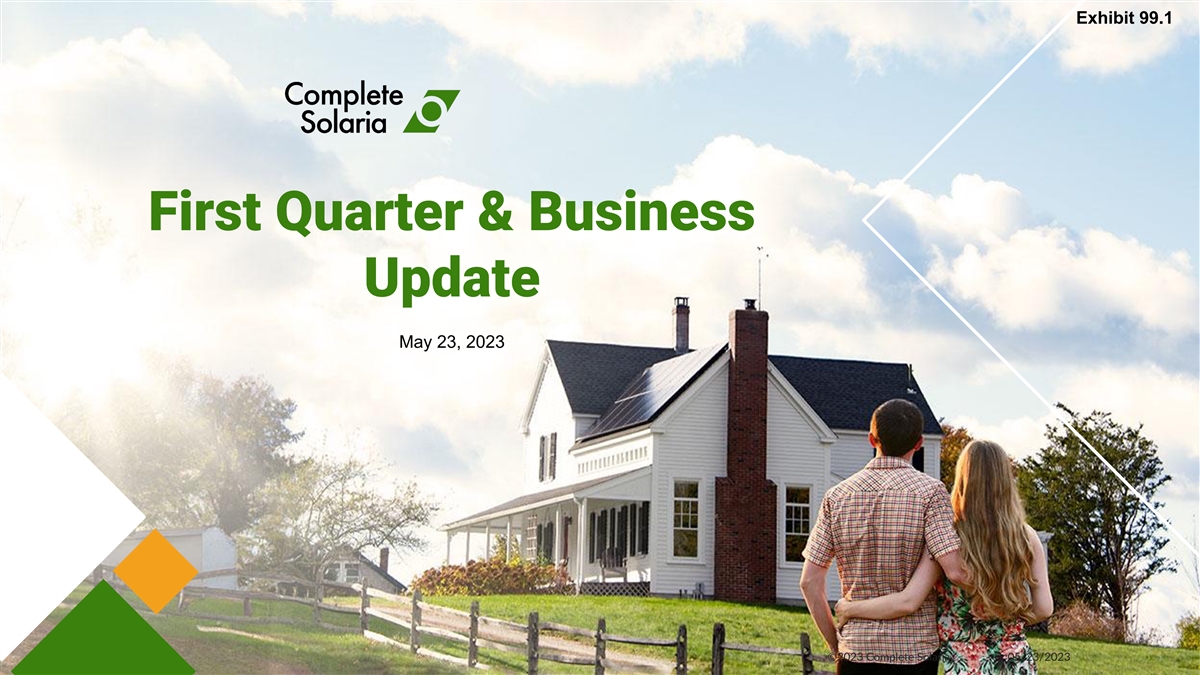 Exhibit 99.1 First Quarter & Business Update May 23, 2023 ©2023 Complete Solaria 05/23/2023