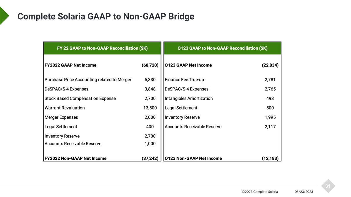 Complete Solaria GAAP to Non-GAAP Bridge 31 ©2023 Complete Solaria 05/23/2023