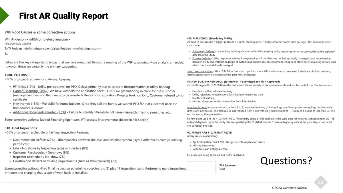 First AR Quality Report Questions? 53 ©2023 Complete Solaria