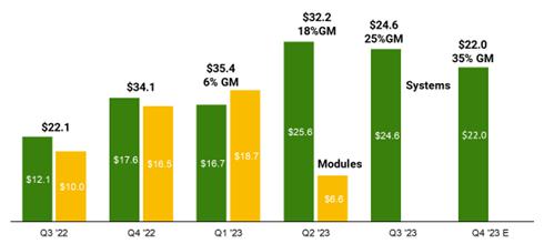 We have completed the Module business divestiture to Maxeon and received $10.2 million, which provides the cash needed in our Q4 plan. This restructuring and singular focus on our high-margin systems business model raised our gross margin to 25% in Q2, and we aim to further improve it to the 32%-40% range in the current Q4 quarter.