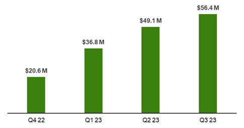While our industry has reported slowing customer demand, Complete Solaria has experienced the opposite. In the third quarter the Company experienced record gross bookings of $56.4 million, a 1.4x increase over the same period last year.