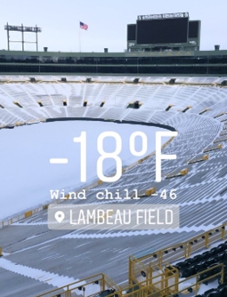 When I got up on December 31, 1967, an arctic front had blasted us with windy (note the flag) -18oF weather on the day of the NFL Championship with the Dallas Cowboys, later dubbed the Ice Bowl. At that temperature, the fans’ breath immediately froze into an ice cloud that hung over Lambeau Field.