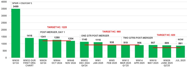 SunPower “found another gear” in its cost reduction program. We are now down to 861 people – each of whom will receive $500 in a stock bonus (about 0.4% annualized dilution) for excellent quarterly performance
