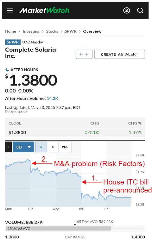 Bad reporting by stock services is a major problem about which I get multiple complaints. Yesterday, the first four SPWR articles on the Market Watch cellphone site were: