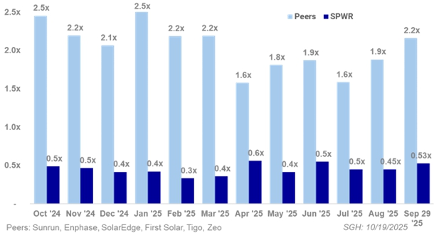 SunPower closed the strategic acquisition of Sunder Energy to create the No. 5 residential solar company in the U.S.* This transformative acquisition expands SunPower’s reach from 22 to 45 states, increases its dealer salesforce from 881 to 1,744 as of last week and is anticipated to increase our bookings in Q4’25 by slightly over 2x. (Remember, a 2x increase in bookings equates to a 1.3x increase in revenue until the new orders are also installed by SunPower in 2026.)
