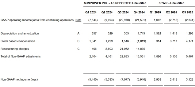 SunPower Q3’25 Revenue & Operating Income Statement1