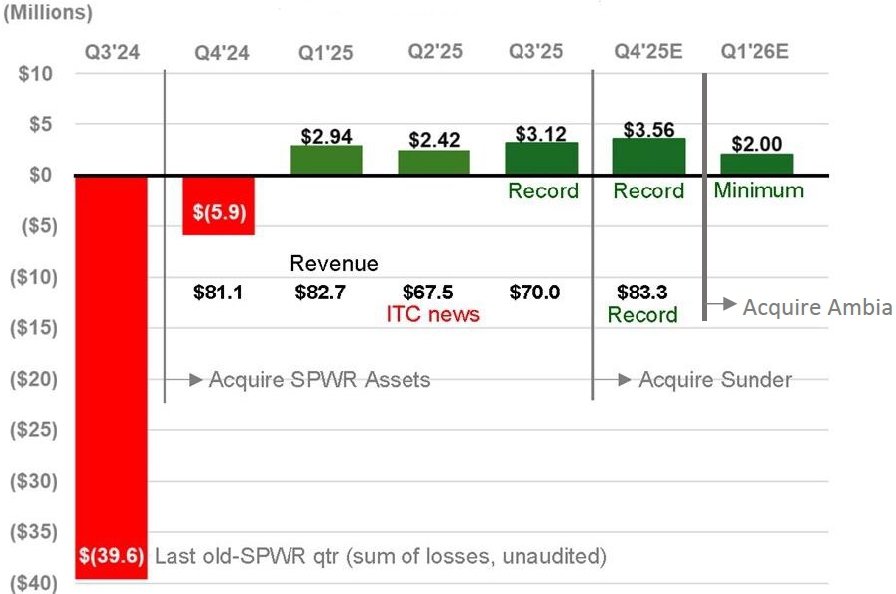 Rodgers concluded, “The tangible benefits of the acquisition after closure will show up fully in Q1’26 financial statements, just when the new industry will be challenged with the ITC loss for homeowners, but not for Third Party Ownership, aka TPO-funded transactions. Fortunately, Ambia’s backlog will be 72% TPO at the close. This proposed acquisition reinforces SunPower’s existing financial forecasts to achieve record revenue and operating income in Q4’25, and to remain profitable in the double-jeopardy Q1’26 quarter.”