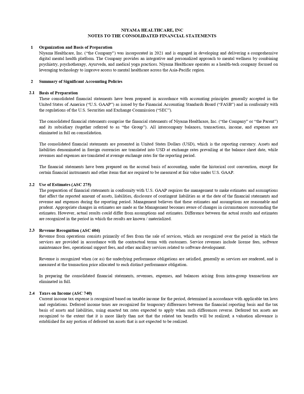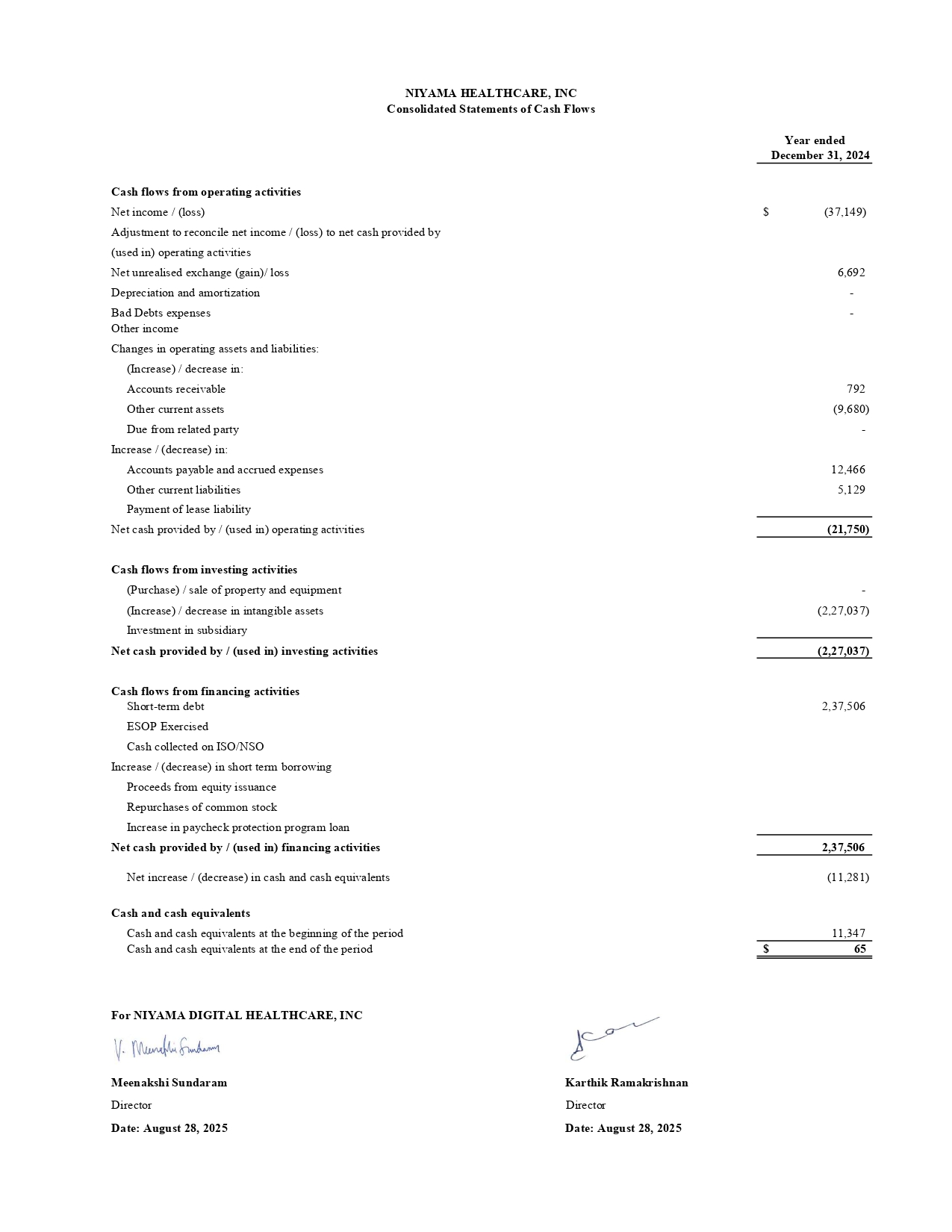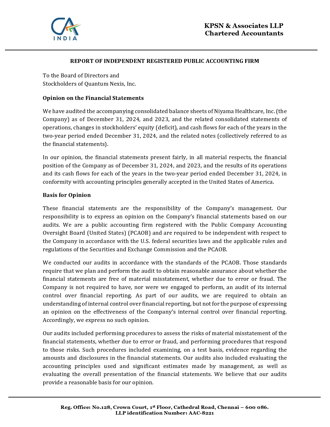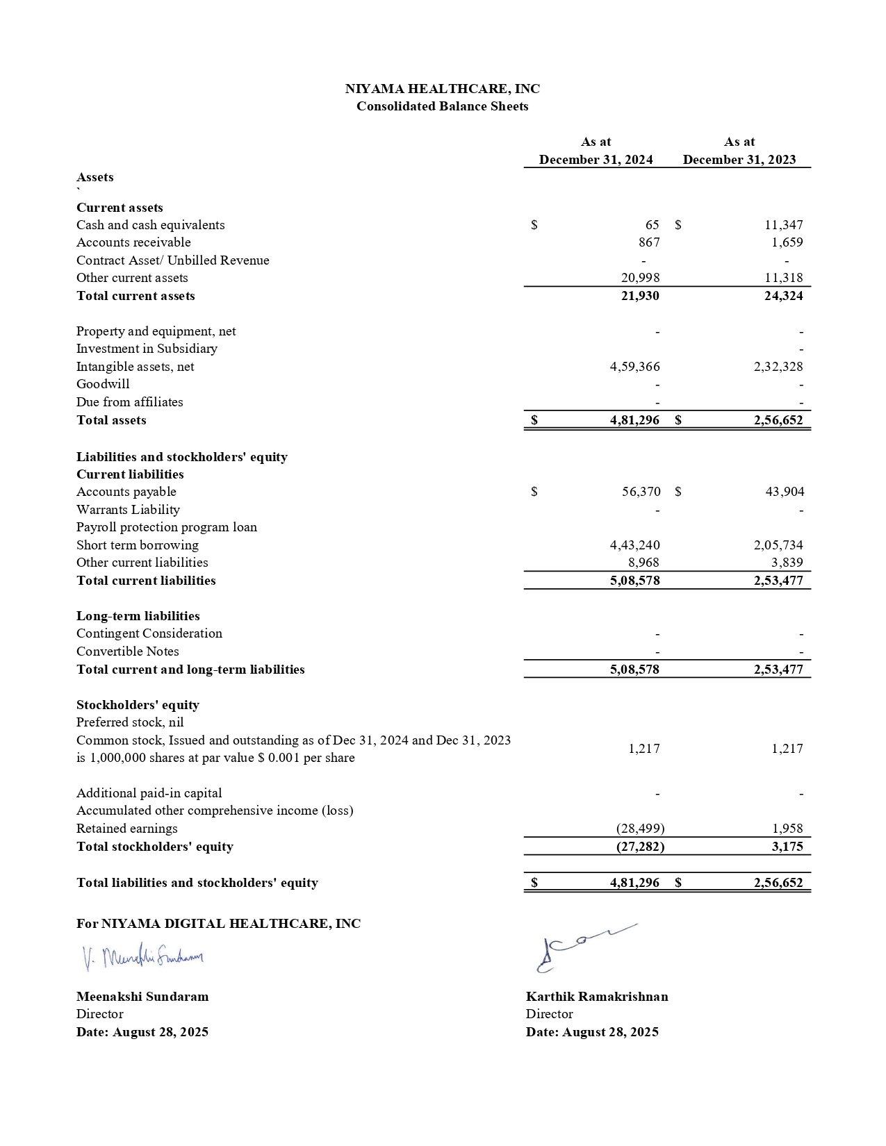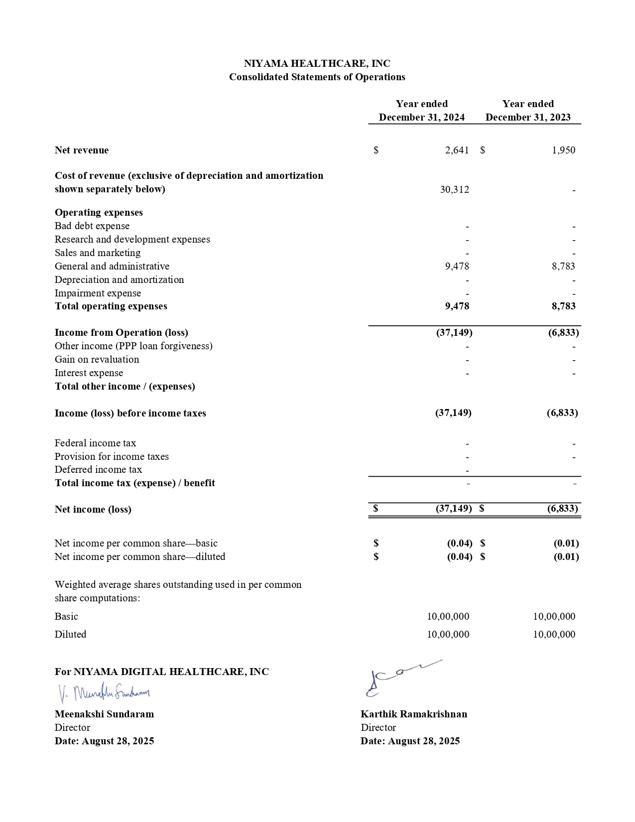 EX-99.1 3 ea025532301ex99-1_health.htm AUDITED FINANCIAL STATEMENTS OF NIYAMA HEALTHCARE, INC. AS OF DECEMBER 31, 2024 AND 2023 AND FOR THE YEARS ENDED DECEMBER 31, 2024 AND 2023