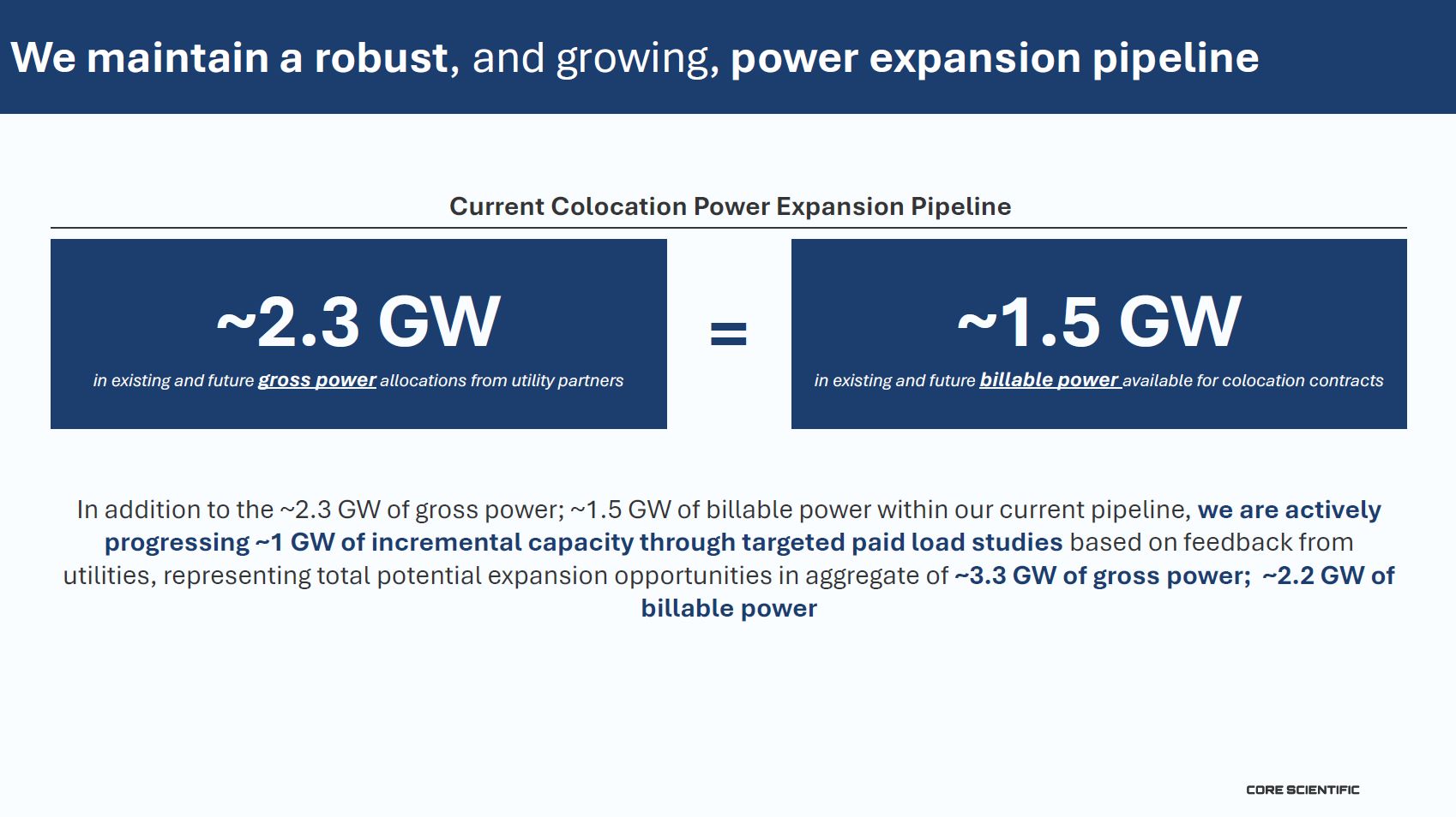 We maintain a robust, and growing, power expansion pipeline  Current Colocation Power Expansion Pipeline  ~2.3 GW  in existing and future gross power allocations from utility partners  ~1.5 GW  in existing and future billable power available for colocation contracts  =  In addition to the ~2.3 GW of gross power; ~1.5 GW of billable power within our current pipeline, we are actively progressing ~1 GW of incremental capacity through targeted paid load studies based on feedback from utilities, representing total potential expansion opportunities in aggregate of ~3.3 GW of gross power; ~2.2 GW of billable power