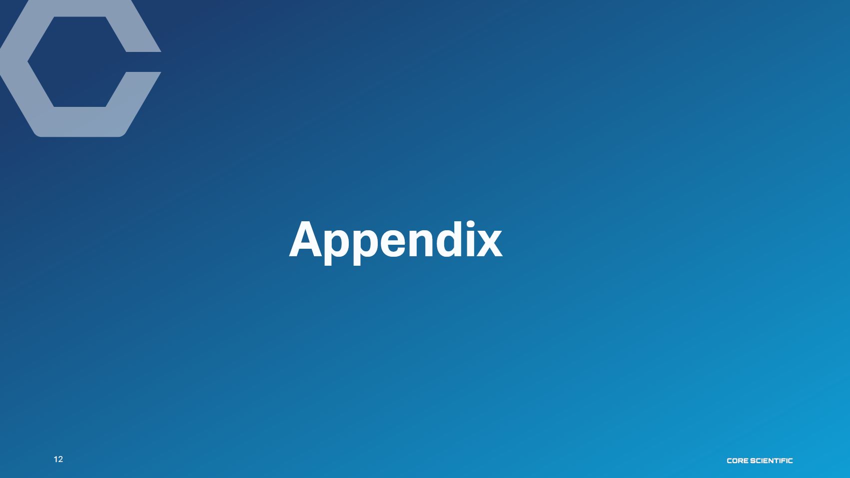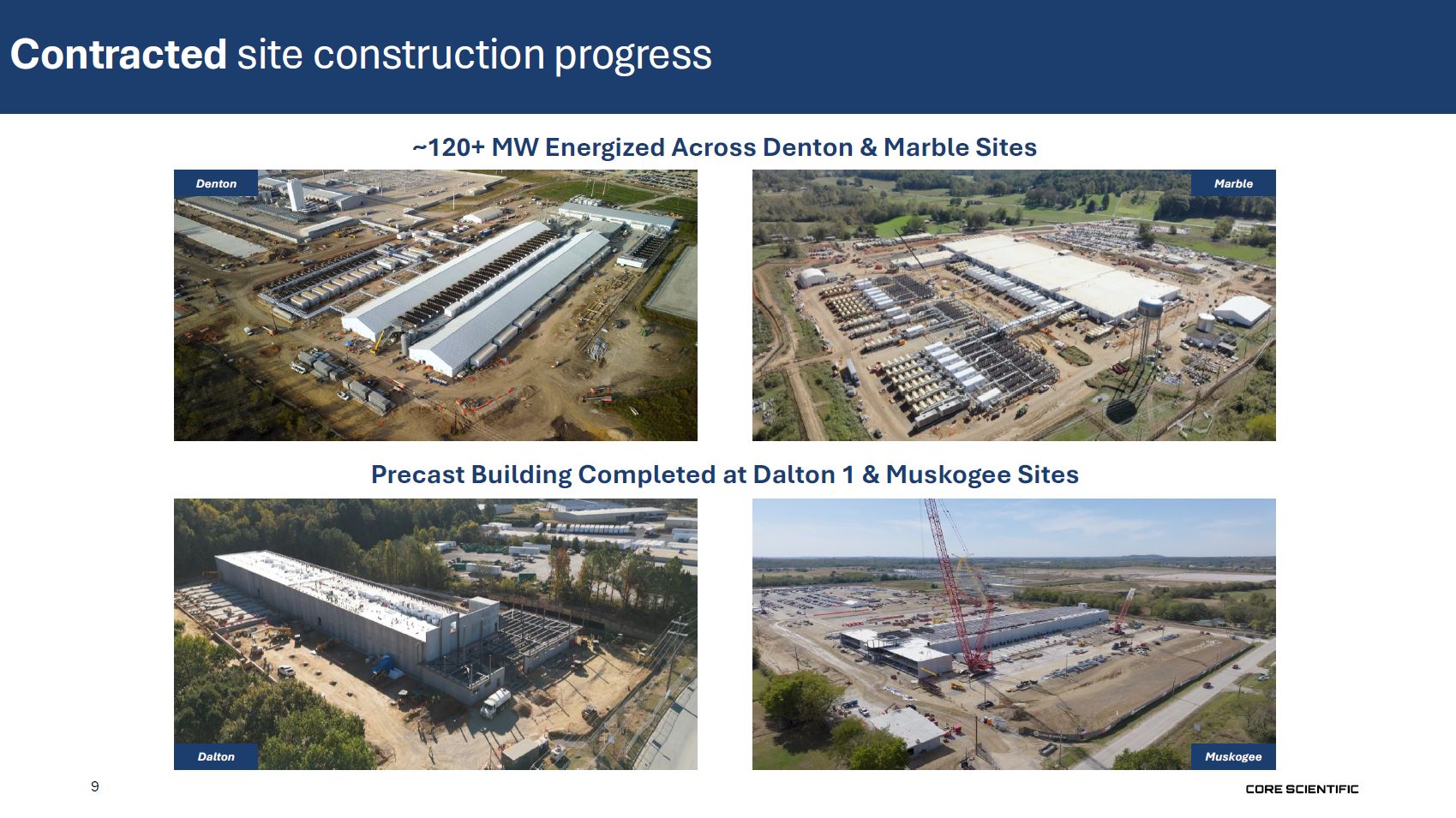 8  Key Contract Features  Contract Detail  Contract Type  Take-or-pay  Customer is committed to paying for contracted capacity, regardless of utilization  Ability to Terminate  No ability to unilaterally terminate the contract  Cost  Fixed price  Price is set upfront, including an annual escalator regardless of actual project costs  Execution Risk  Joint execution risk  Both parties aligned on meeting key milestones  Security Interest  UCC filings  We have liens on the data center assets  Total Core Scientific Capex Spend  $104 Million for 70 MW  CoreWeave contract detail