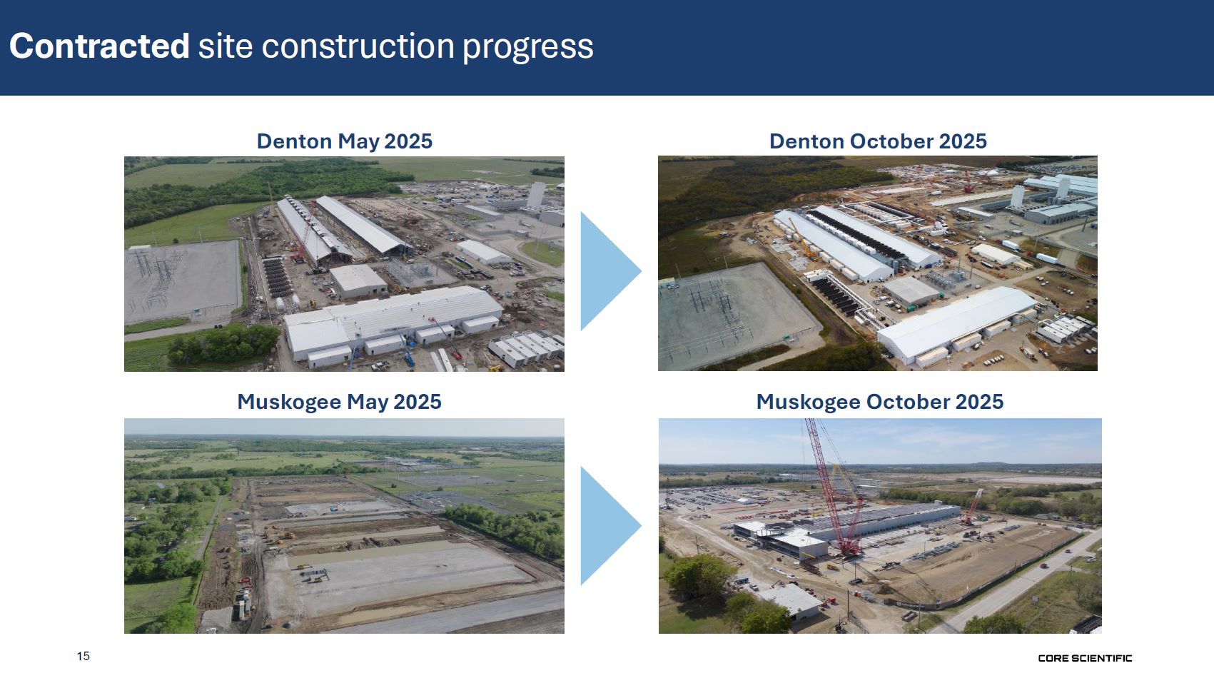 15  Denton May 2025  Denton October 2025  Muskogee May 2025  Muskogee October 2025  Contracted site construction progress
