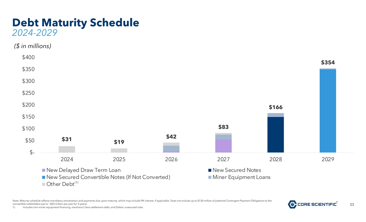 Key Terms of Post-Emergence Debt Exit Delayed Draw New Secured New Secured Miner Equipment Debt Key Terms Term Loan Notes Convertible Notes (Election 2) $80 million ($40 million roll- Facility Size $150 million $260 million $53 million up, $40 million new money) (1) 6.0% cash / 6.0% PIK or 3.0% cash / 10.0% PIK for 2 Interest Rate 9.0% cash 12.5% cash 10.0% cash years, 10.0% cash thereafter Maturity 3 years 4 years 5 years 5 years Conversion (if Optional: $5.83 / Share N/A N/A N/A applicable) Mandatory: $7.79 / Share 1) PIK interest payable in New Common Shares. 10