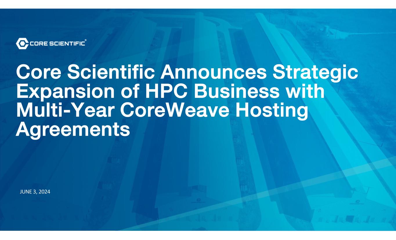 1 JUNE 3, 2024 Core Scientific Announces Strategic Expansion of HPC Business with Multi-Year CoreWeave Hosting Agreements JUNE 3, 2024