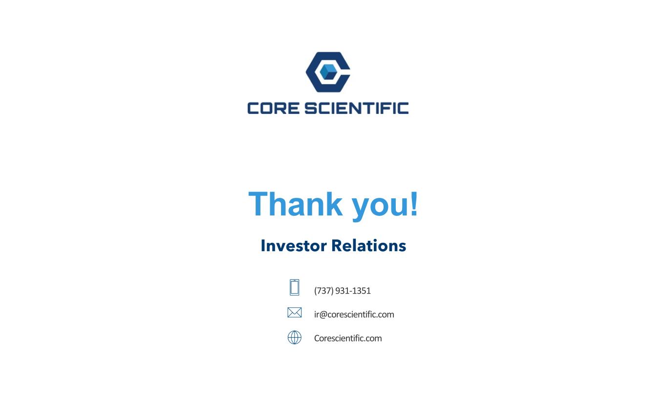 Thank you! Investor Relations (737) 931-1351 ir@corescientific.com Corescientific.com