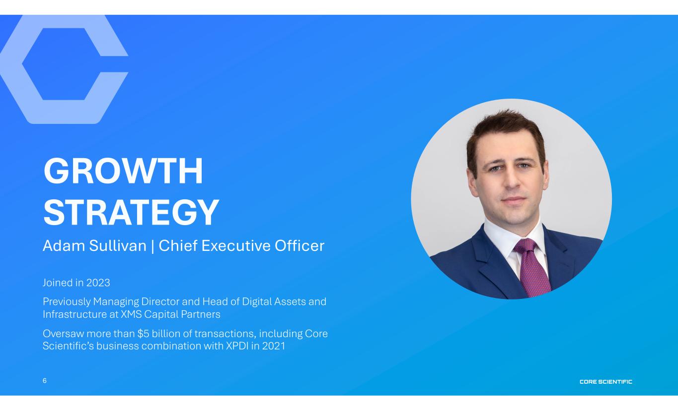 6 GROWTH STRATEGY Joined in 2023 Previously Managing Director and Head of Digital Assets and Infrastructure at XMS Capital Partners Oversaw more than $5 billion of transactions, including Core Scientific’s business combination with XPDI in 2021 Adam Sullivan | Chief Executive Officer