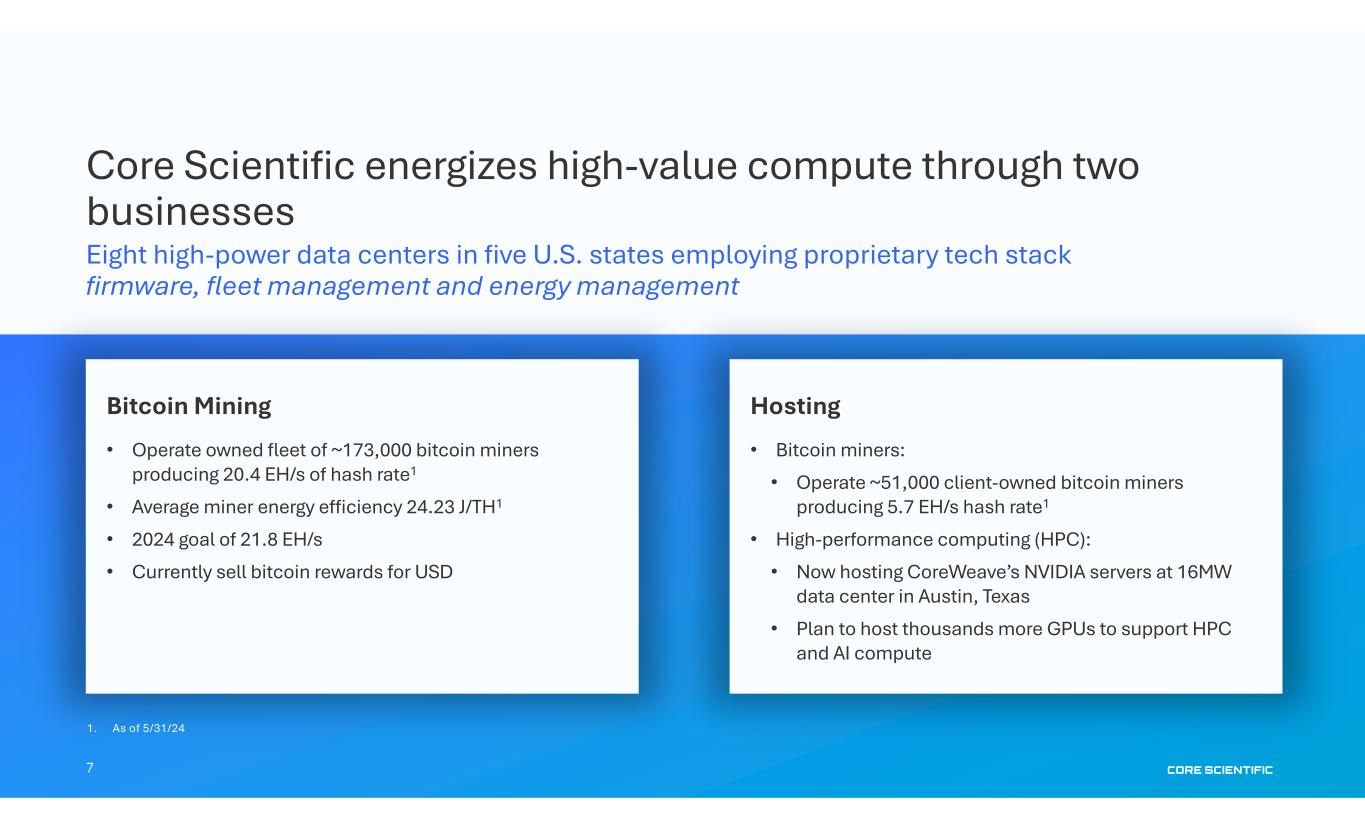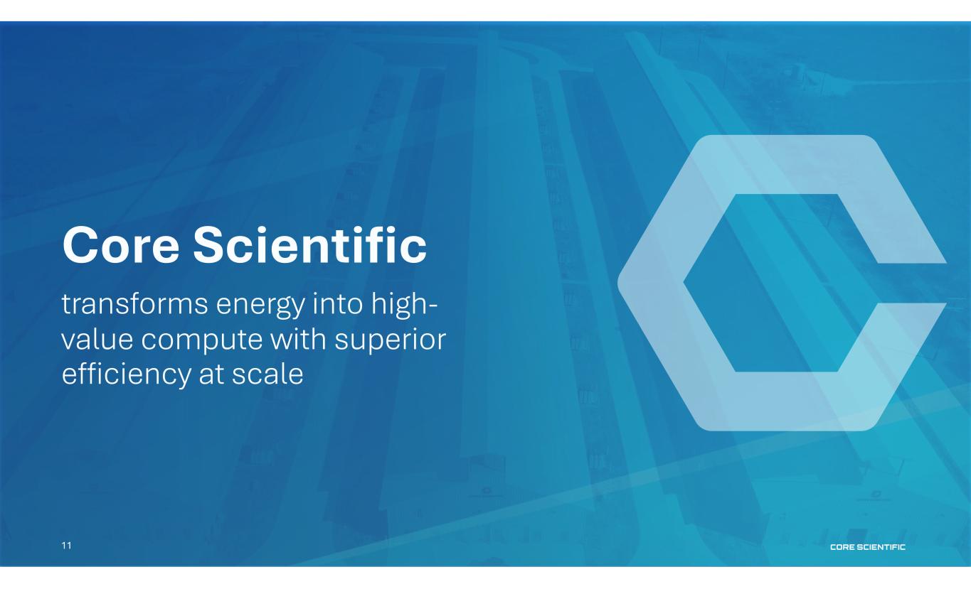 11 Core Scientific transforms energy into high- value compute with superior efficiency at scale