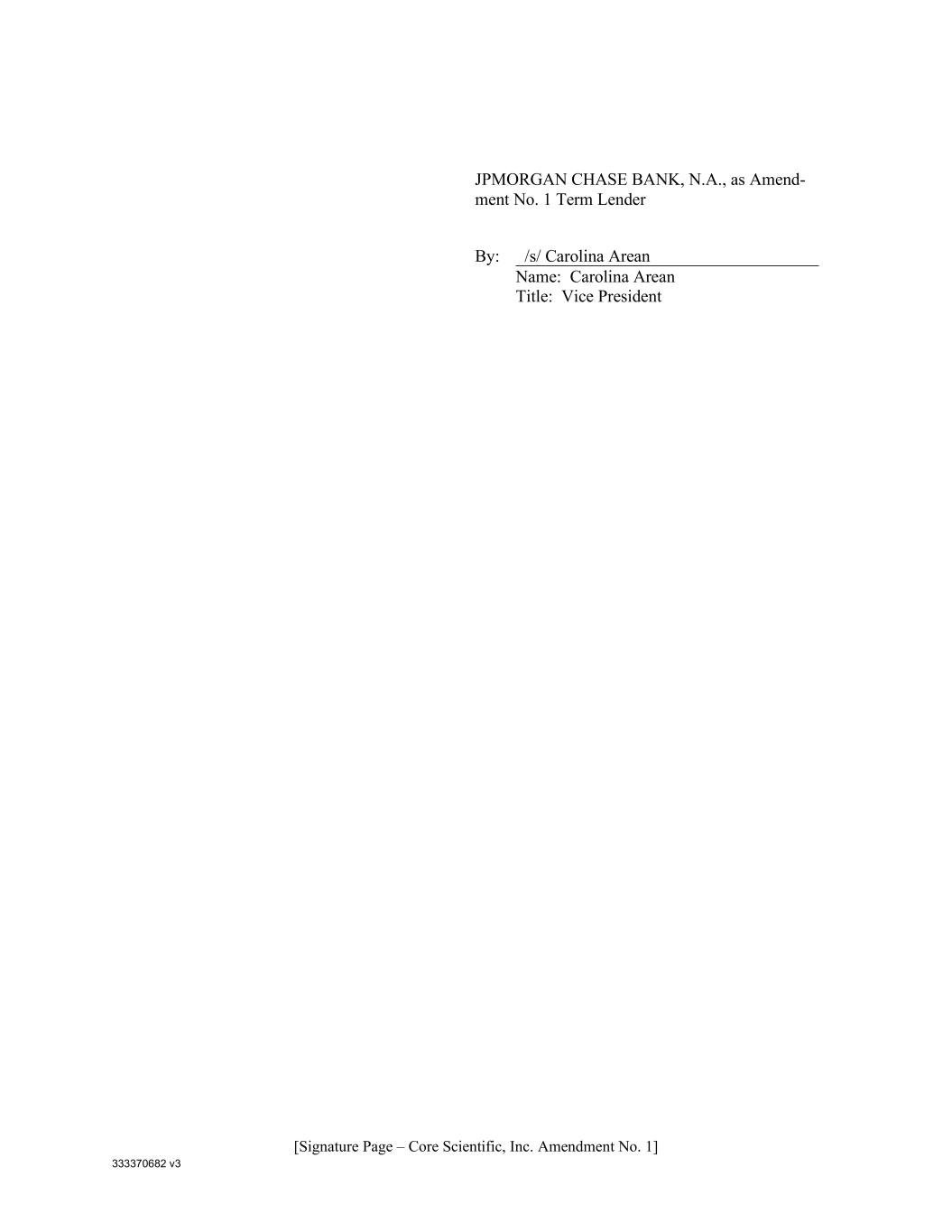333370682 v3 [Signature Page – Core Scientific, Inc. Amendment No. 1] JPMORGAN CHASE BANK, N.A., as Amend- ment No. 1 Term Lender By: /s/ Carolina Arean Name: Carolina Arean Title: Vice President
