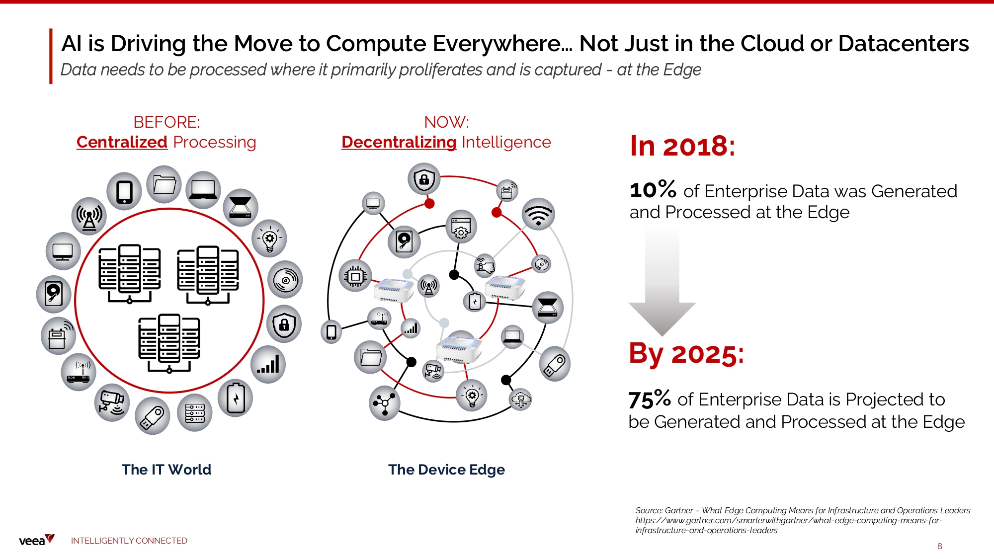 AI is Driving the Move to Compute Everywhere… Not Just in the Cloud or Datacenters Data needs to be processed where it primarily proliferates and is captured - at the Edge BEFORE: Centralized Processing NOW: Decentralizing Intelligence T he D e v ice E d ge T he IT Wo r ld Source: Gartner – What Edge Computing Means for Infrastructure and Operations Leaders https:// www.gartner.com/smarterwithgartner/what - edge - computing - means - for - infrastructure - and - operations - leaders In 2018: 10% of Enterprise Data was Generated a n d Pr o ces s ed at th e E dge By 2025: 75% of Enterprise Data is Projected to be Generated and Processed at the Edge I N TE LLI G E N T L Y C O NN EC T E D 8