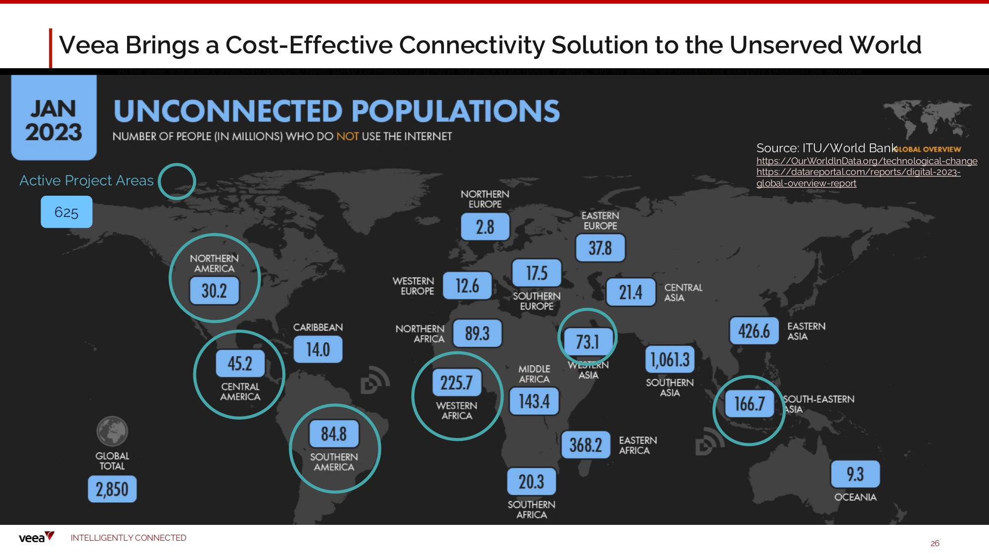 26 I N TE LLI G E N T L Y C O NN EC T E D Source: ITU/World Bank h t t p s : / / O u r W o r l d l n D ata.o r g / te c hn o l o g i cal - chan g e https://datareportal.com/reports/digital - 2023 - global - overview - report Active Project Areas 6 25 Veea Brings a Cost - Effective Connectivity Solution to the Unserved World