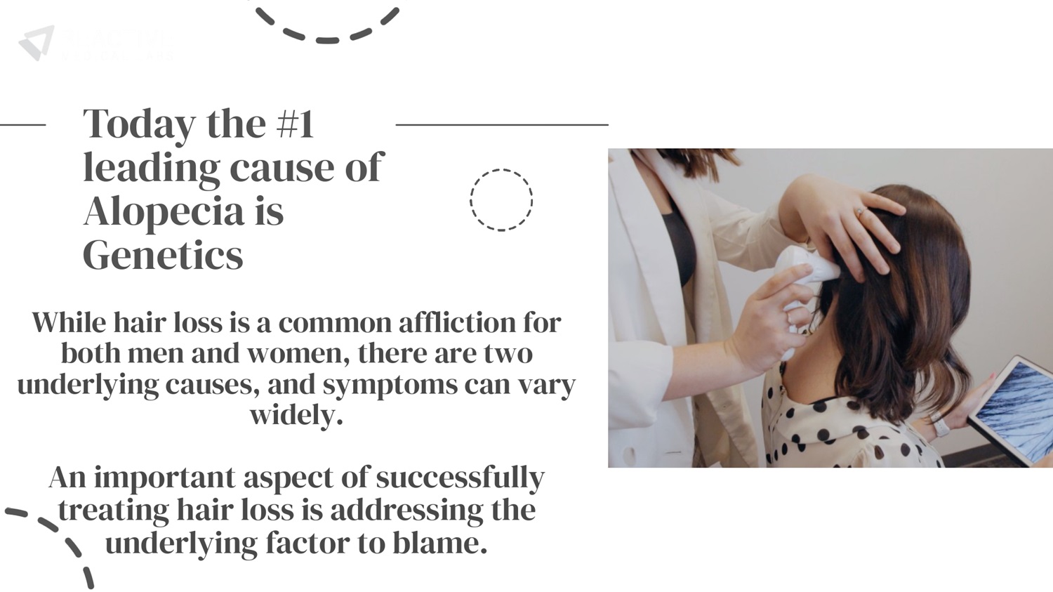 Today the #1 leading cause of Alopecia is Genetics While hair loss is a common affliction for both men and women, there are two underlying causes, and symptoms can vary widely. An important aspect of successfully treating hair loss is addressing the underlying factor to blame.
