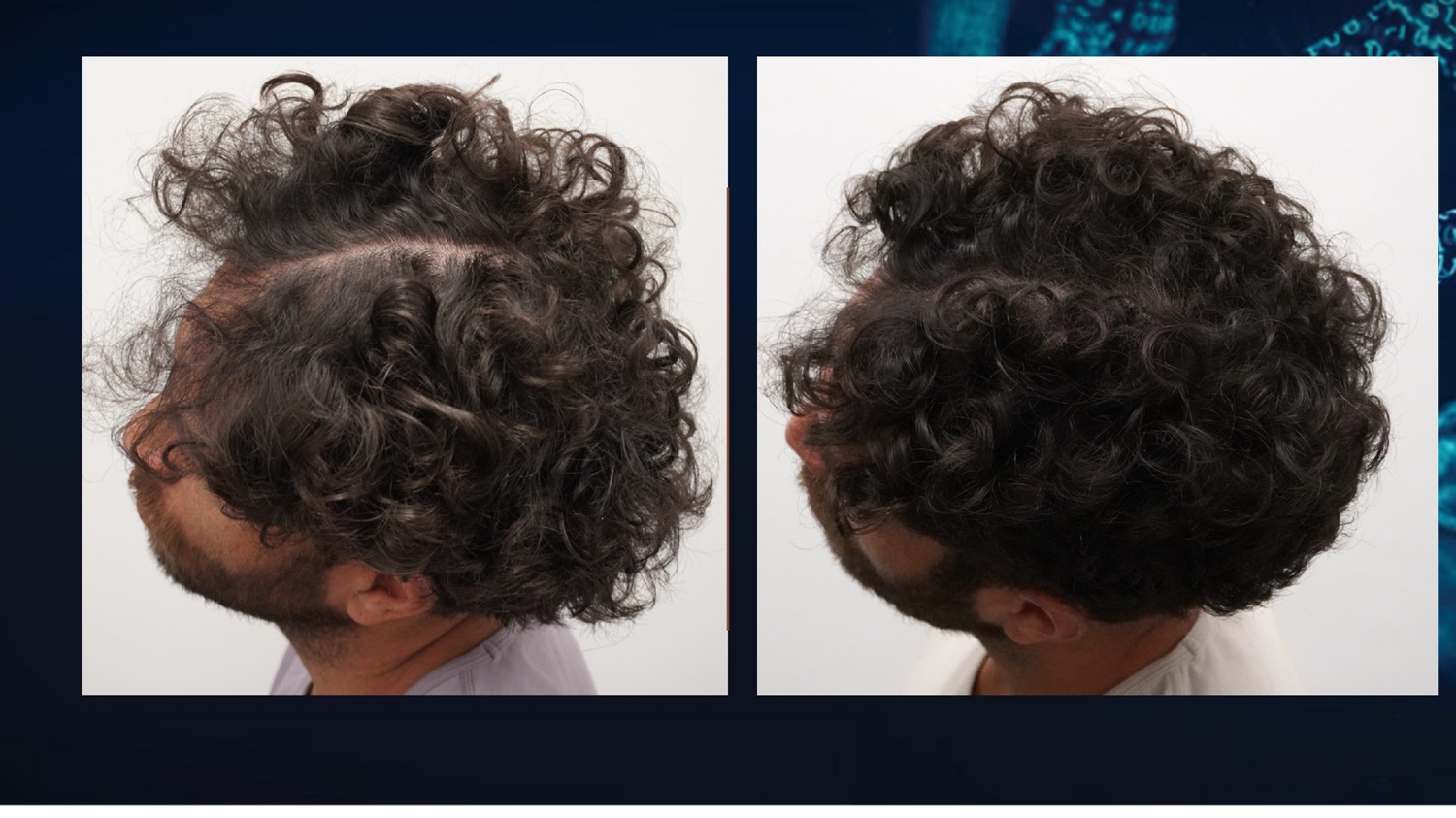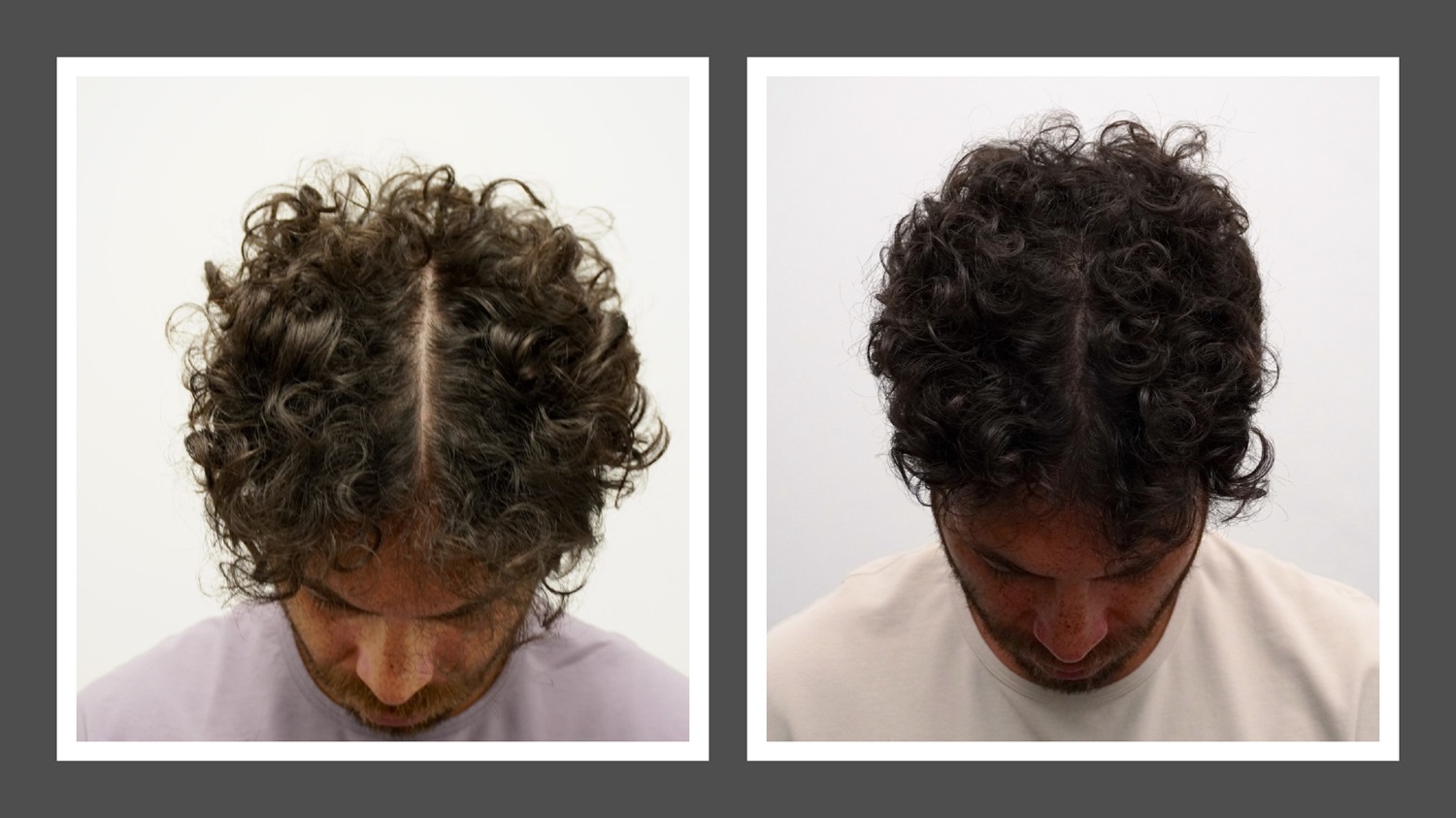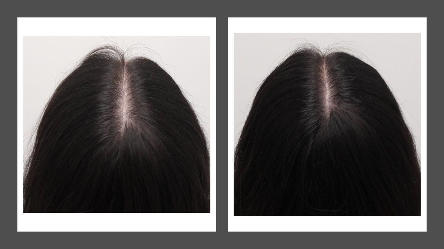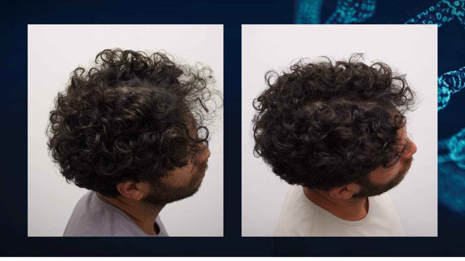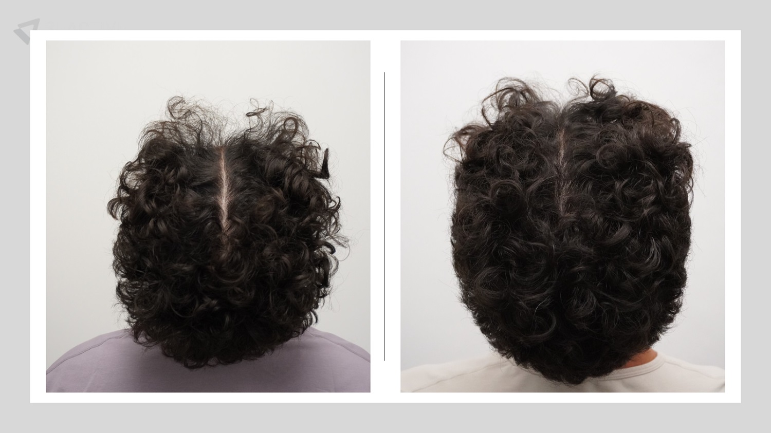 At the Hairline Baseline: We can see miniaturization of hair follicles that are almost gone. After: You can see the pigmentation has changed and the hair is stronger. More hairs per sq. cm doesn’t always mean new growth - - this can be a large number of hairs recovered from the dormant phase.
