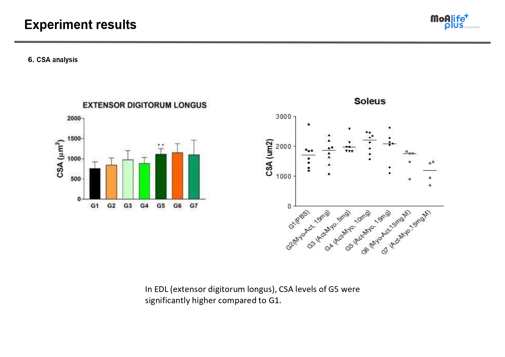 Ex perimen t resul ts 6. CSA analysis In EDL (extensor digitorum longus), CSA levels of G5 were significantly higher compared to G1.