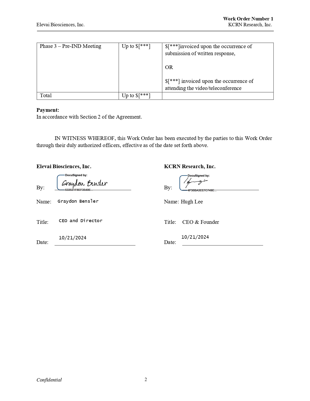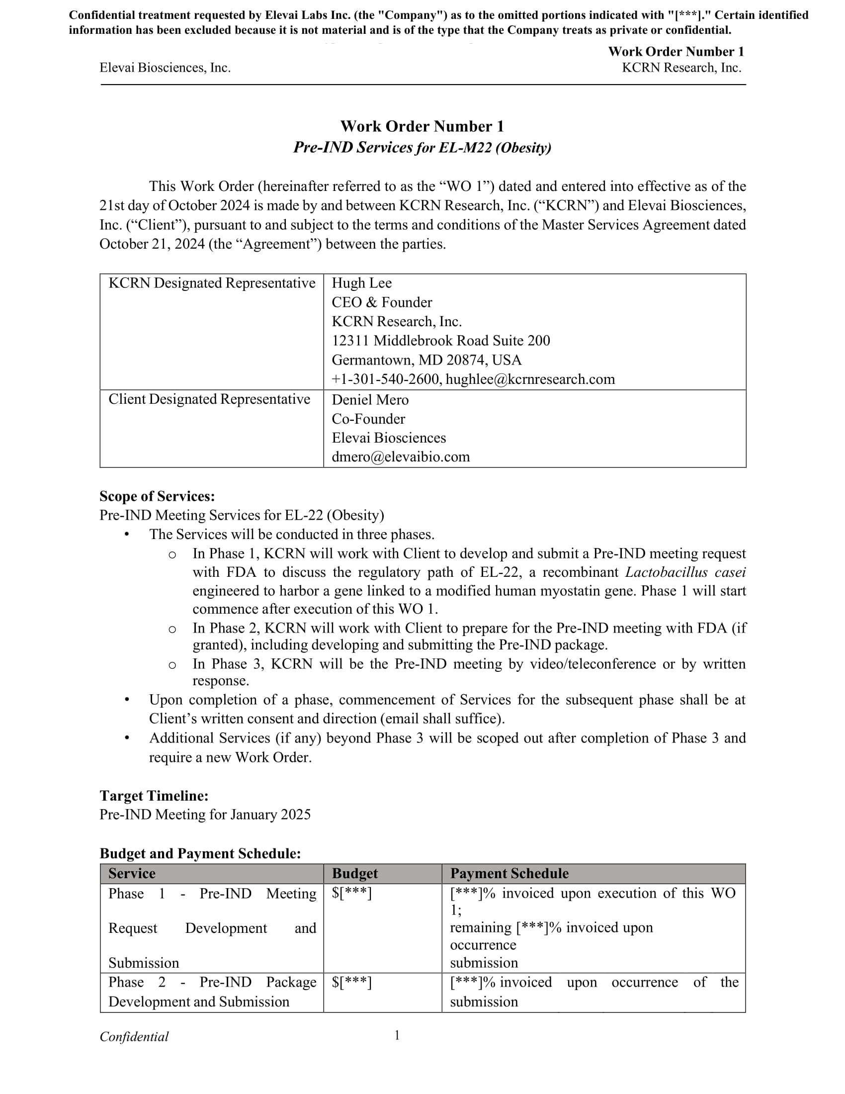 EX-10.2 3 ea021838101ex10-2_elevai.htm WORK ORDER NUMBER 1 DATED OCTOBER 21, 2024