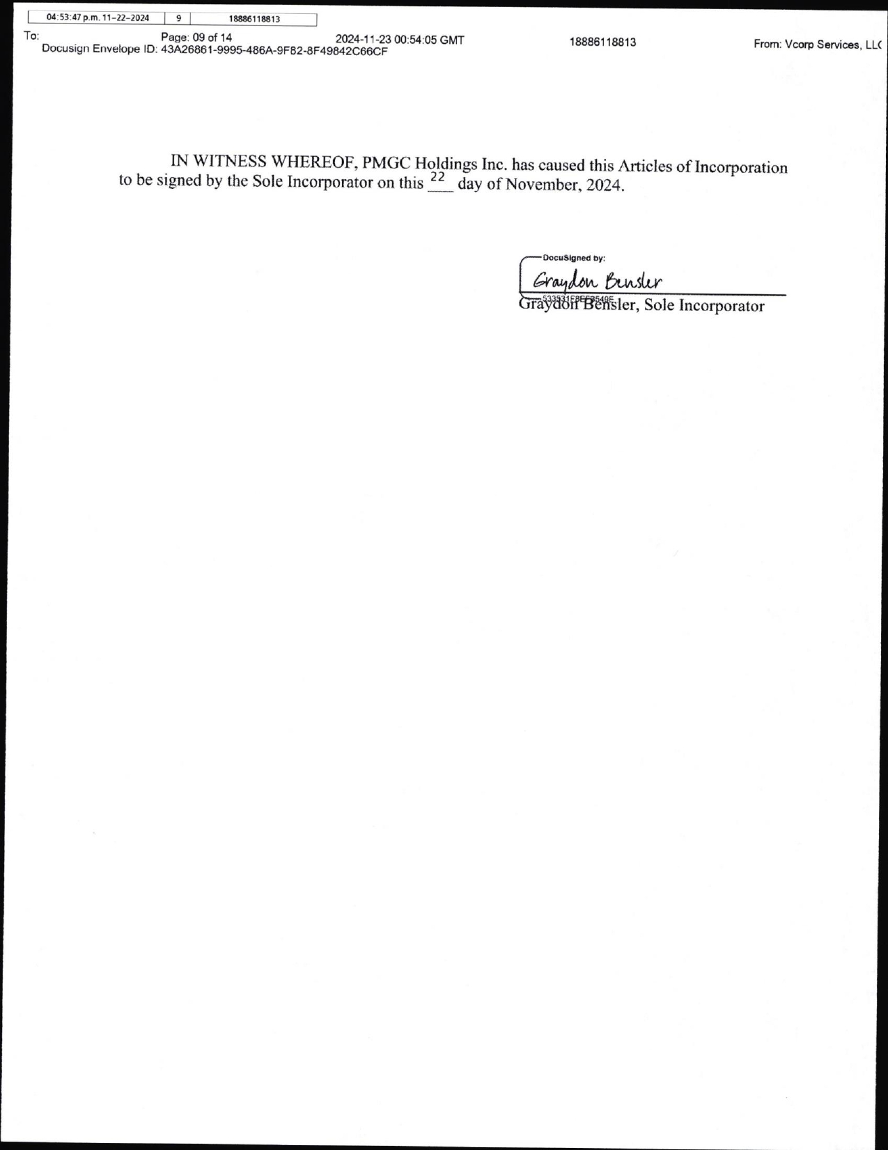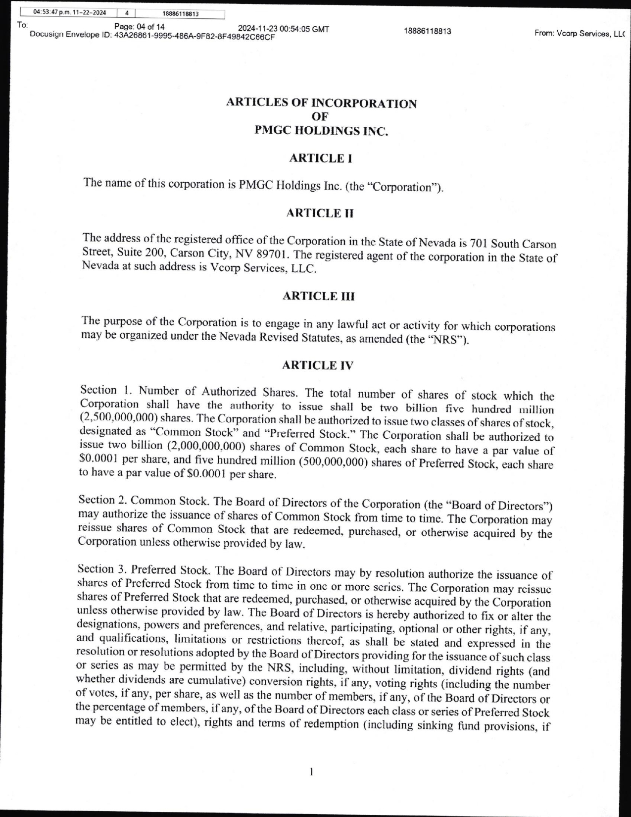 EX-3.3 5 ea022532701ex3-3_pmgchold.htm ARTICLES OF INCORPORATION OF PMGC HOLDINGS INC., A NEVADA CORPORATION