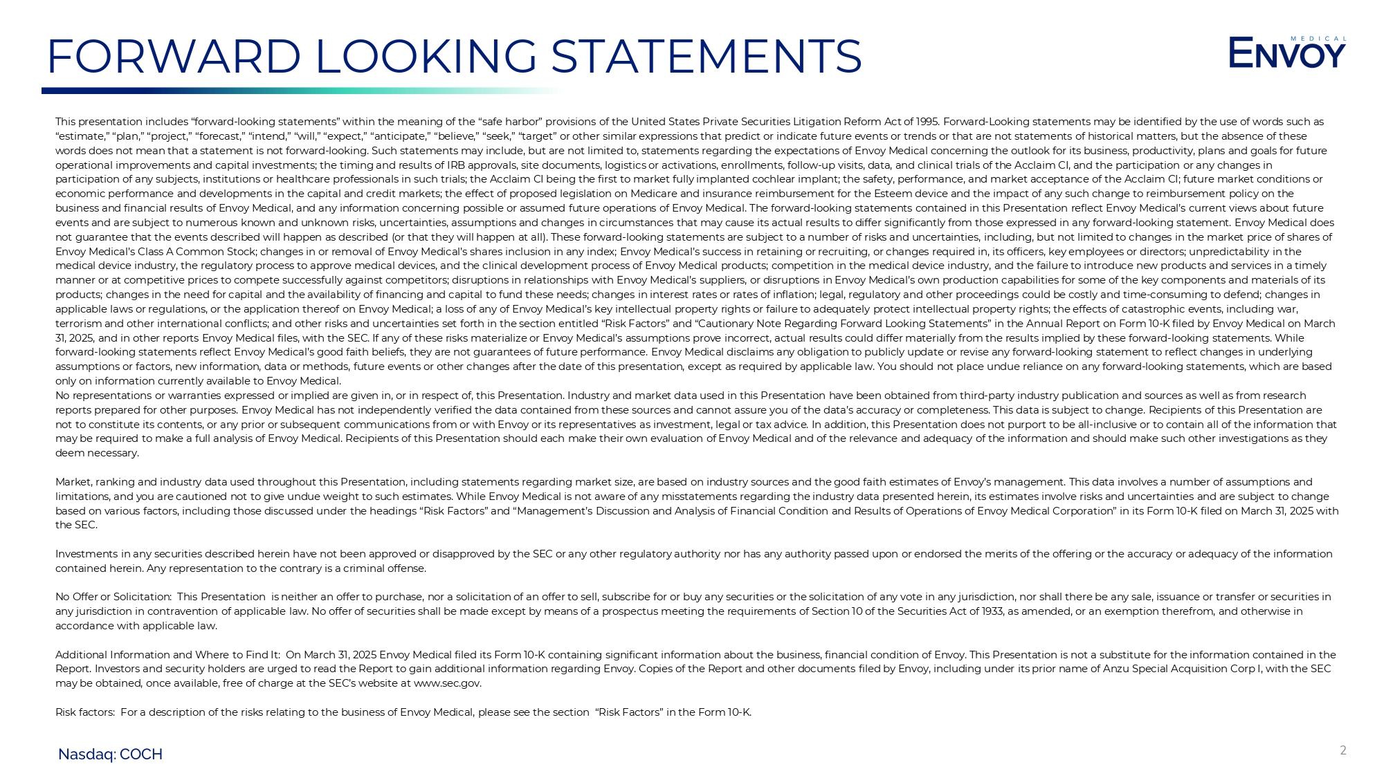 INVESTOR PRESENTATION DECEMBER 2025 www.envoymedical.com NASDAQ: COCH Hear for Life