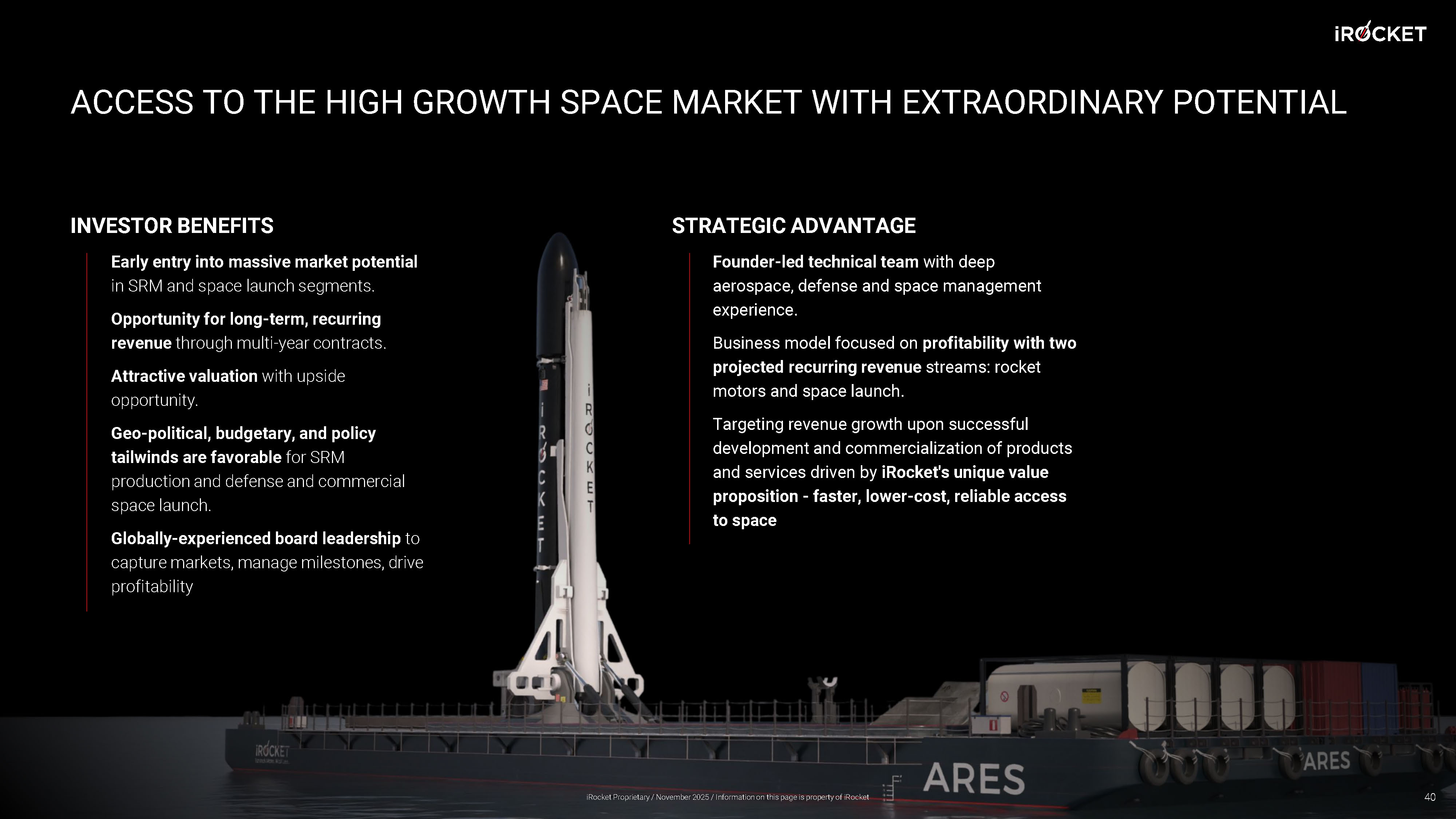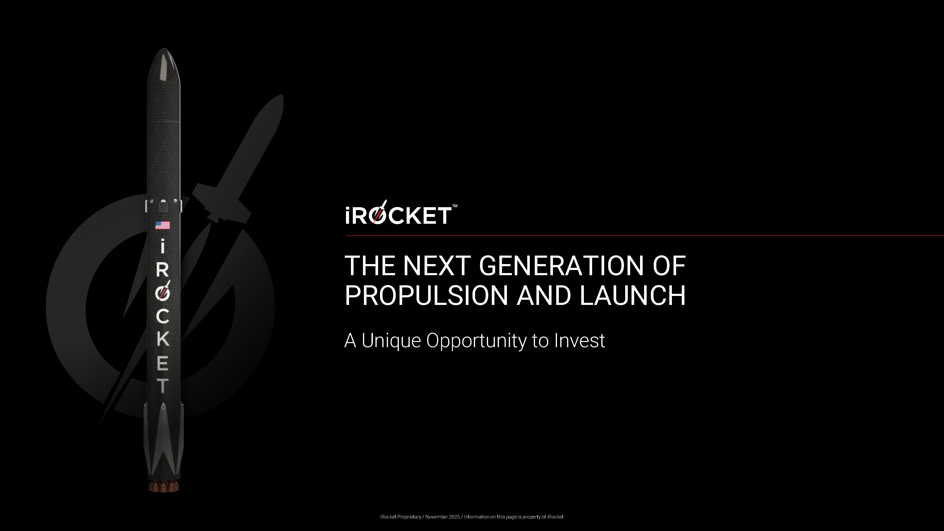 THE NEXT GENERATION OF PROPULSION AND LAUNCH A Unique Opportunity to Invest iRocket Proprietary / November 2025 / Information on this page is property of iRocket