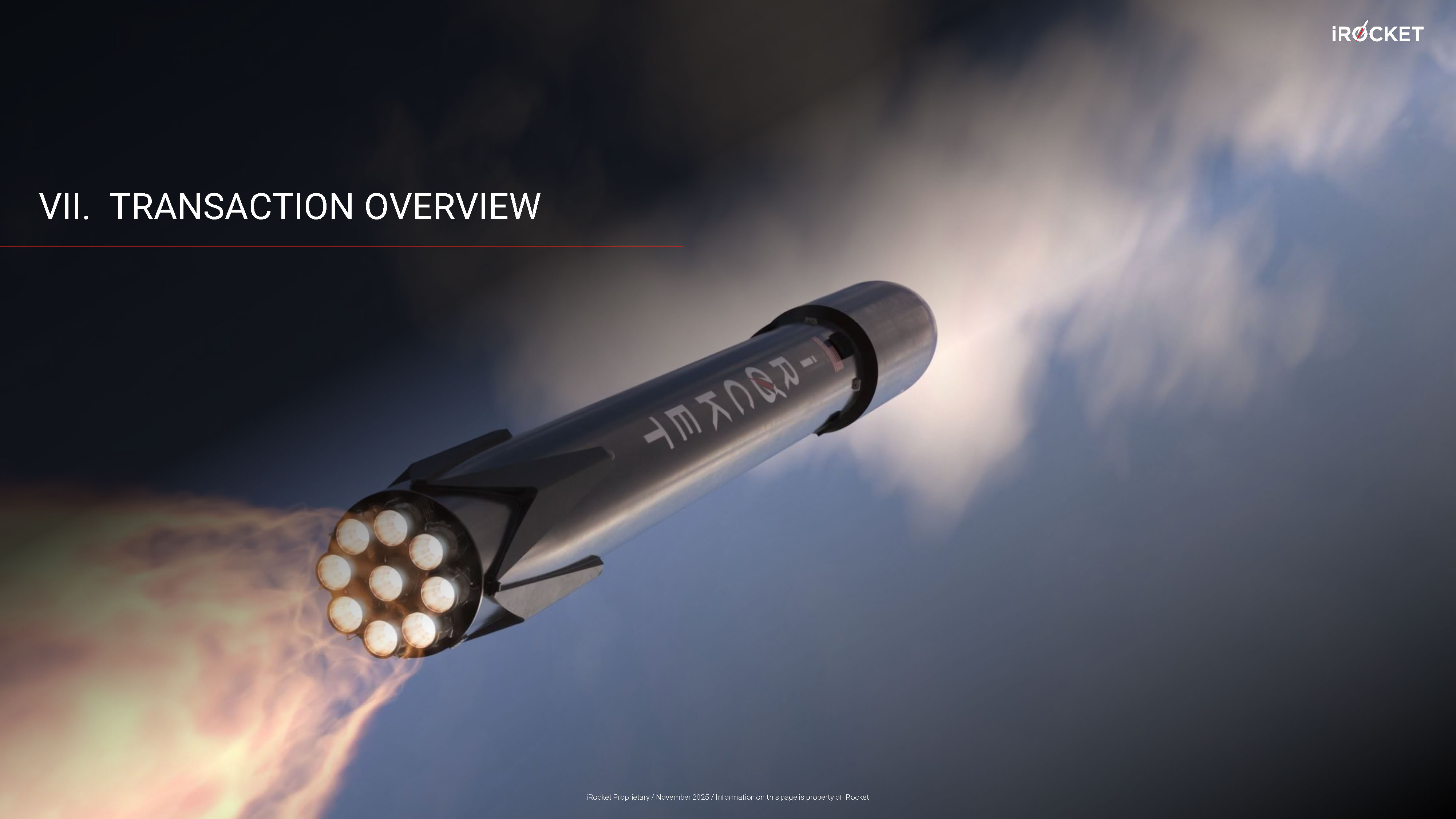 VII. TRANSACTION OVERVIEW iRocket Proprietary / November 2025 / Information on this page is property of iRocket