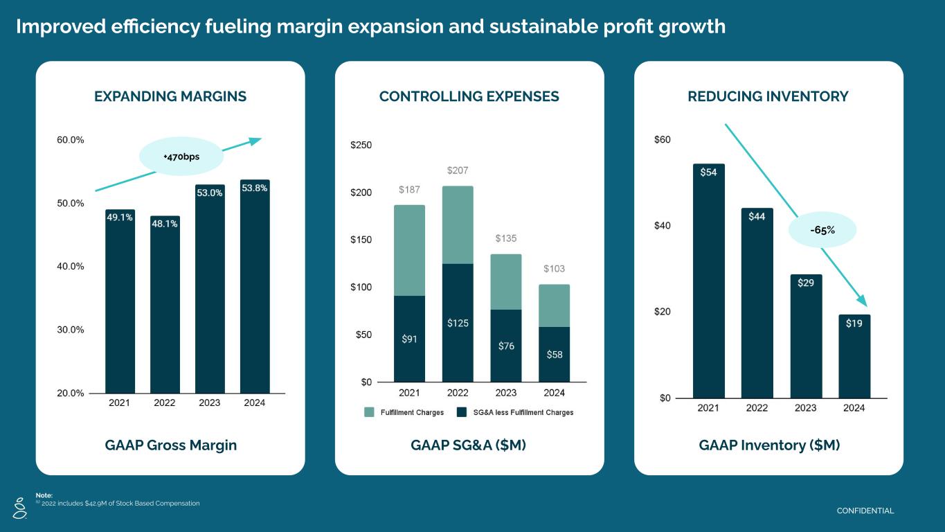 CONFIDENTIAL Improved efficiency fueling margin expansion and sustainable profit growth EXPANDING MARGINS CONTROLLING EXPENSES REDUCING INVENTORY Note: (1) 2022 includes $42.9M of Stock Based Compensation +470bps GAAP Gross Margin GAAP SG&A ($M) GAAP Inventory ($M) -65%