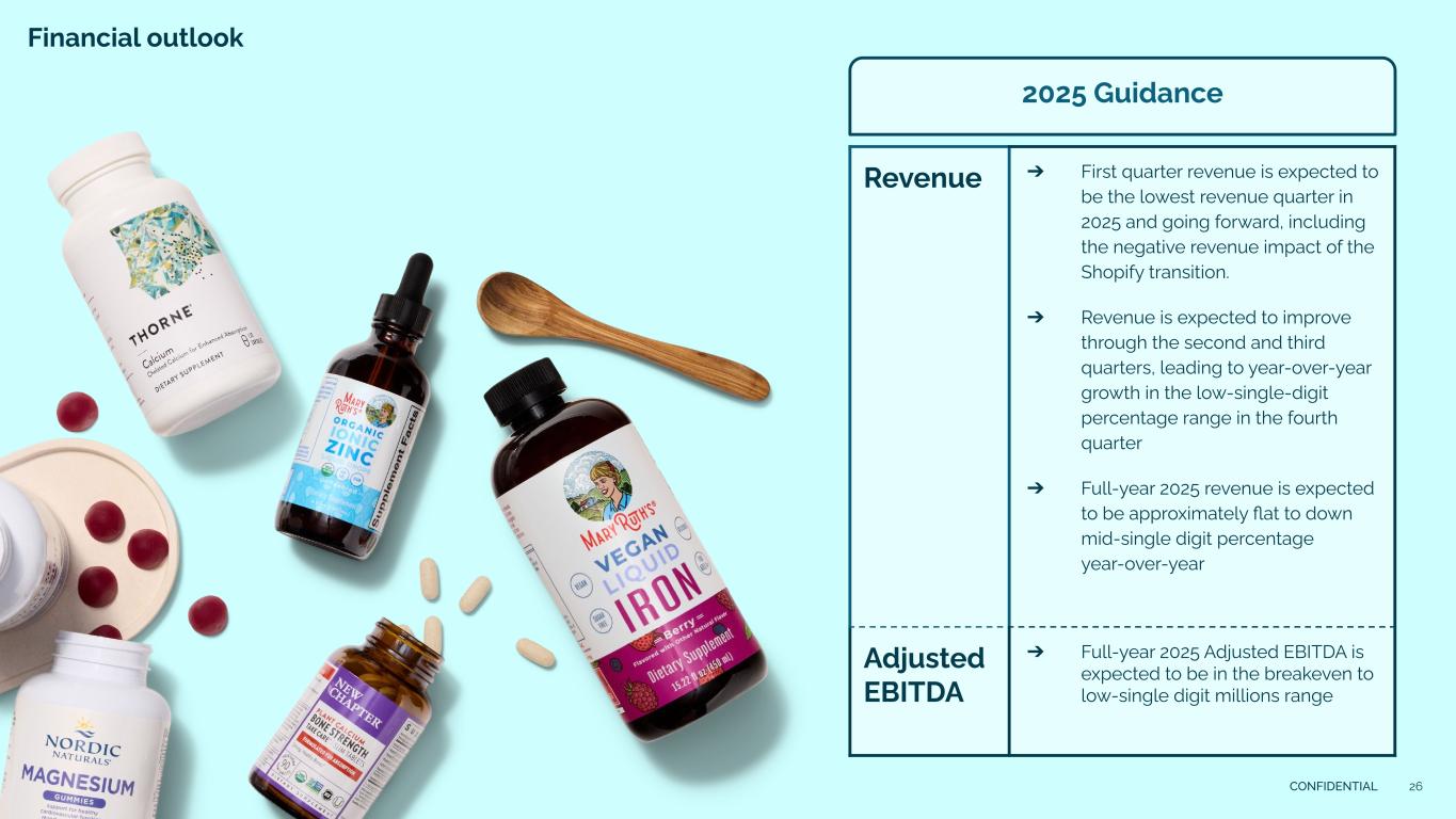 26CONFIDENTIAL Financial outlook Revenue ➔ First quarter revenue is expected to be the lowest revenue quarter in 2025 and going forward, including the negative revenue impact of the Shopify transition. ➔ Revenue is expected to improve through the second and third quarters, leading to year-over-year growth in the low-single-digit percentage range in the fourth quarter ➔ Full-year 2025 revenue is expected to be approximately flat to down mid-single digit percentage year-over-year Adjusted EBITDA ➔ Full-year 2025 Adjusted EBITDA is expected to be in the breakeven to low-single digit millions range 2025 Guidance