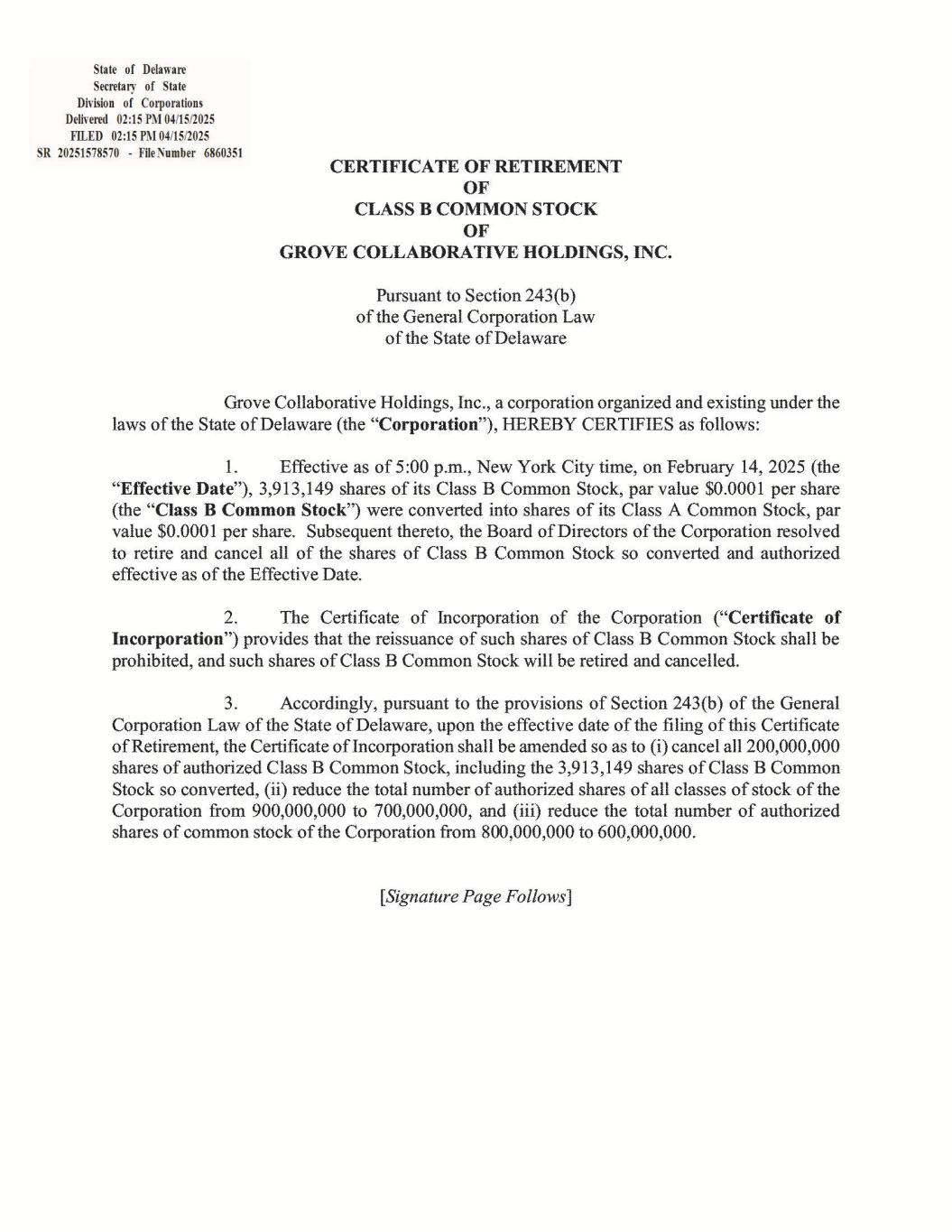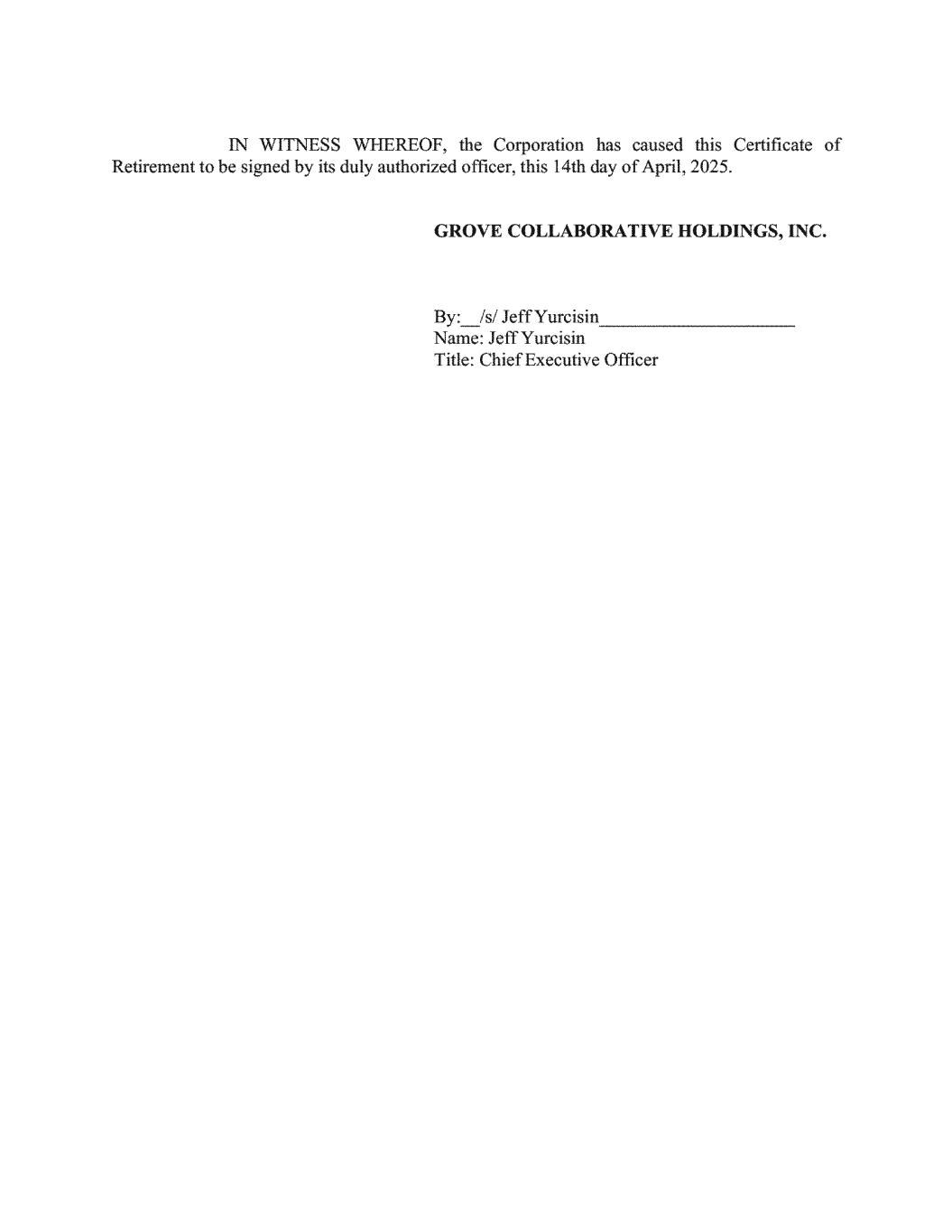 EX-3.1 2 grove-certificateofretir.htm EX-3.1 grove-certificateofretir