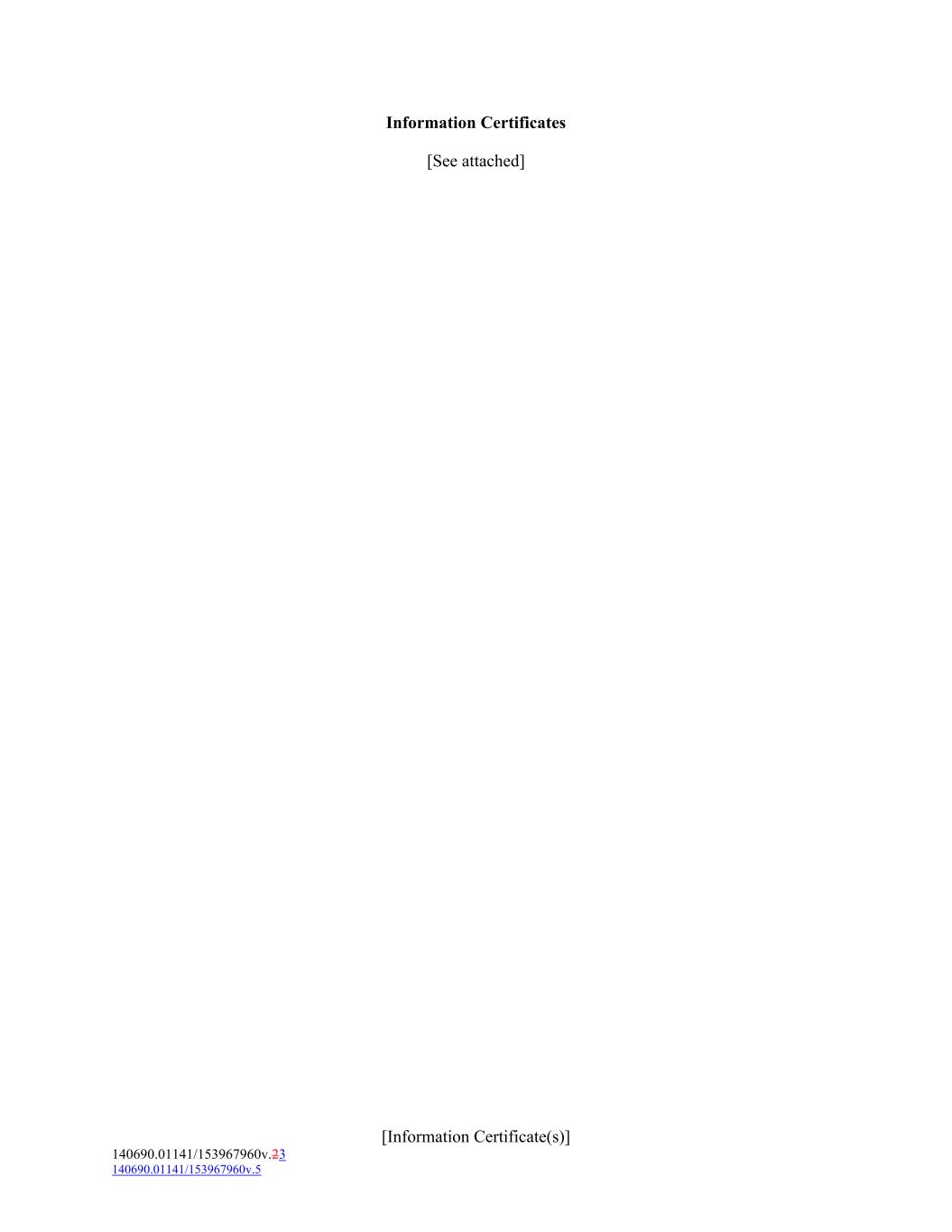 Information Certificates [See attached] [Information Certificate(s)] 140690.01141/153967960v.23 140690.01141/153967960v.5