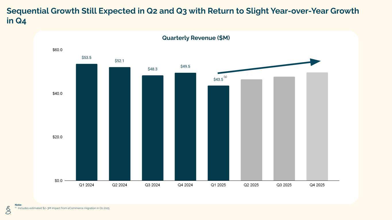 Sequential Growth Still Expected in Q2 and Q3 with Return to Slight Year-over-Year Growth in Q4 Quarterly Revenue ($M) Note: (1) Includes estimated $2–3M impact from eCommerce migration in Q1 2025 (1)