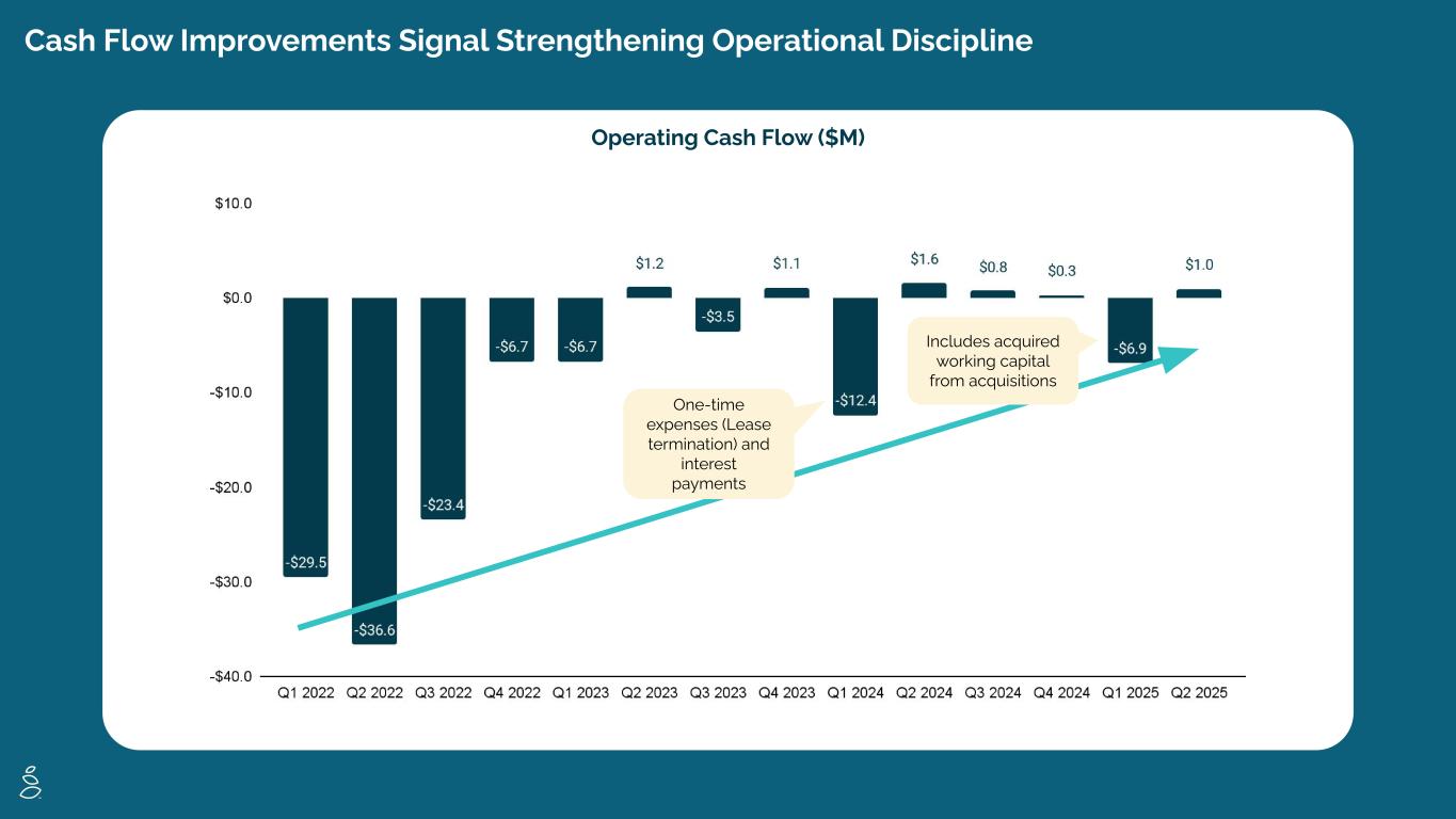 Adjusted EBITDA Reconciliation - Quarterly $MM (1) Note: (1) Totals in table may not sum due to rounding and Q3 2022 Interest Income presented here reflects a like-for-like basis since this was the only quarter we did not back it out. This differs from our SEC filings. Reconciliation of Net (Loss) Income to Adjusted EBITDA Q1 2022 Q2 2022 Q3 2022 Q4 2022 Q1 2023 Q2 2023 Q3 2023 Q4 2023 Q1 2024 Q2 2024 Q3 2024 Q4 2024 Q1 2025 Q2 2025 Net Loss ($47.4) ($35.3) $7.7 ($12.7) ($13.1) ($10.9) ($9.8) ($9.5) ($3.4) ($10.1) ($1.3) ($12.6) ($3.5) ($3.6) Stock-Based Compensation $4.5 $20.1 $9.8 $11.3 $4.9 $4.9 $2.1 $3.6 $3.1 $3.4 $2.8 $2.7 $1.0 $1.4 Depreciation and Amortization $1.4 $1.5 $1.4 $1.4 $1.4 $1.4 $1.5 $1.5 $2.2 $2.4 $2.8 $2.4 $0.4 $0.5 Changes in Fair Value of Derivative Liabilities ($1.9) ($16.2) ($32.6) ($22.4) $0.3 ($1.7) $2.7 ($1.5) ($0.2) $0.0 ($7.8) ($1.9) ($0.1) ($0.1) Transaction Costs Allocated to Derivative Liabilities upon Business Combination — $6.7 $0.2 — ($3.7) — — — — — — — — — Interest Income ($0.0) ($0.1) ($0.2) ($0.5) ($0.4) ($1.0) ($1.2) ($1.1) ($1.1) ($1.0) ($0.6) ($0.4) ($0.2) ($0.1) Interest Expense $2.1 $2.3 $2.5 $2.8 $3.7 $4.0 $4.1 $4.2 $4.1 $4.1 $2.9 $1.6 $0.3 $0.3 Restructuring Expenses $1.6 — $1.4 $5.9 $0.0 $0.6 — $3.2 ($2.9) $2.2 $1.2 $1.6 — — Transaction related Costs — — — — — — — — — — — — $0.6 $0.7 Loss on Extinguishment of Debt — — — $4.7 — — — — — — — $5.0 — — Provision for Income Taxes $0.0 $0.0 $0.0 $0.0 $0.0 $0.0 $0.0 $0.0 $0.0 $0.0 $0.0 $0.0 $0.0 $0.0 Litigation and legal settlement expenses — — — — — — $0.7 ($0.2) — — — — — — Adjusted EBITDA ($39.7) ($21.1) ($9.6) ($9.5) ($6.8) ($2.6) $0.2 $0.1 $1.9 $1.1 ($0.0) ($1.6) ($1.6) ($0.9)