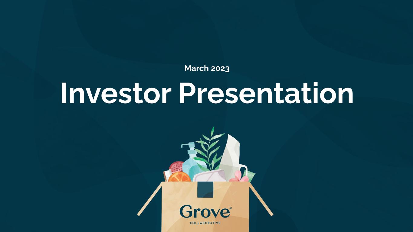 NOTES START FROM HERE AND GROW UP NO CONTENT BELOW THIS LINE CONTENT BELOW THIS LINE SUBTITLE BELOW THIS LINE TITLE CAN NOT GO ABOVE THIS LINE 3 59 76 0 114 88 120 159 144 130 186 128 102 163 157 172 196 200 255 255 255 0 0 0 247 243 228 3 59 76 247 243 228 2 Basis of Presentation This Presentation (this “Presentation”) is provided for informational purposes only and has been prepared to assist interested parties in making their own evaluation with respect to a potential investment in Grove Collaborative Holdings, Inc. (“Grove”) (the “Potential Transaction”) and for no other purpose. By accepting, reviewing or reading this Presentation, you will be deemed to have agreed to the obligations and restrictions set out below. Without the express prior written consent of Grove, this Presentation and any information contained within it may not be used for any purpose other than your evaluation of Grove. This Presentation supersedes and replaces all previous oral or written communications between the parties hereto relating to the subject matter hereof. This Presentation and any oral statements made in connection with this Presentation do not constitute an offer to sell, or a solicitation of an offer to buy, or a recommendation to purchase, any securities in any jurisdiction, nor shall there be any sale, issuance or transfer of any securities in any jurisdiction where, or to any person to whom, such offer, solicitation or sale may be unlawful under the laws of such jurisdiction. This Presentation does not constitute either advice or a recommendation regarding any securities. Any offer to sell securities will be made only pursuant to a definitive Subscription Agreement and will be made in reliance on an exemption from registration under the Securities Act of 1933, as amended, for offers and sales of securities that do not involve a public offering. Grove reserves the right to withdraw or amend for any reason any offering and to reject any Subscription Agreement for any reason. The communication of this Presentation is restricted by law; it is not intended for distribution to, or use by any person in, any jurisdiction where such distribution or use would be contrary to local law or regulation. No representations or warranties, express or implied are given in, or in respect of, this Presentation. Industry and market data used in this Presentation have been obtained from third-party industry publications and sources as well as from research reports prepared for other purposes. Grove has not independently verified the data obtained from these sources and cannot assure you of the data’s accuracy or completeness. This data is subject to change. Recipients of this Presentation are not to construe its contents, or any prior or subsequent communications from or with Grove or its respective affiliates or representatives as investment, legal or tax advice. In addition, this Presentation does not purport to be all-inclusive or to contain all of the information that may be required to make a full analysis of Grove or the Potential Transaction. Recipients of this Presentation should each make their own evaluation of Grove and of the relevance and adequacy of the information and should make such other investigations as they deem necessary. To the fullest extent permitted by law, in no circumstances will Grove or any of its respective stockholders, affiliates, representatives, partners, directors, officers, employees, advisers or agents be responsible or liable for any direct, indirect, or consequential loss or loss of profit arising from the use of this presentation, its contents, its omissions, reliance on the information contained within it or on opinions communicated in relation thereto or otherwise arising in connection therewith. Forward-Looking Statements Certain statements included in this Presentation are not historical facts but are forward-looking statements for purposes of the safe harbor provisions under the United States Private Securities Litigation Reform Act of 1995. Forward-looking statements generally are accompanied by words such as “believe,” “may,” “will,” “estimate,” “continue,” “anticipate,” “intend,” “expect,” “should,” “would,” “plan,” “predict,” “potential,” “seem,” “seek,” “future,” “outlook,” and similar expressions that predict or indicate future events or trends or that are not statements of historical matters, but the absence of these words does not mean that a statement is not forward-looking. These forward-looking statements include, but are not limited to, (1) statements regarding estimates and forecasts of other financial and performance metrics and projections of market opportunity; (2) references with respect to the projected future financial performance of Grove and Grove’s operating companies; (3) changes in the market for Grove’s products, and expansion plans and opportunities; (4) anticipated customer retention; and (5) expectations around potential mergers and acquisitions and capital availability. These statements are based on various assumptions, whether or not identified in this Presentation, and on the current expectations of Grove’s management and are not predictions of actual performance. These forward-looking statements are provided for illustrative purposes only and are not intended to serve as, and must not be relied on by any investor as, a guarantee, an assurance, a prediction or a definitive statement of fact or probability. Actual events and circumstances are difficult or impossible to predict and will differ from assumptions. Many actual events and circumstances are beyond the control of Grove. These forward-looking statements are subject to a number of risks and uncertainties, including: changes in domestic and foreign business, market, financial, political and legal conditions; failure to realize the anticipated benefits of the Potential Transaction; risks relating to 