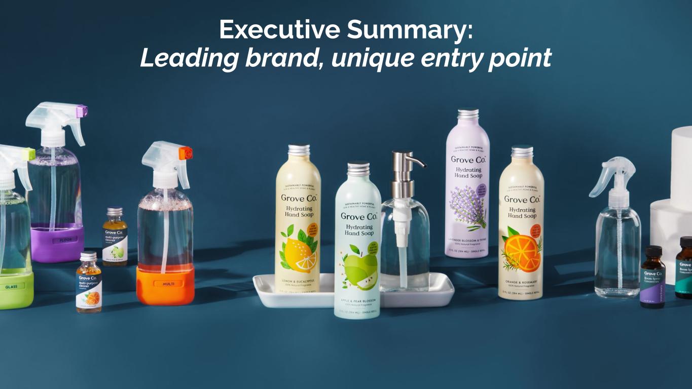 NOTES START FROM HERE AND GROW UP NO CONTENT BELOW THIS LINE CONTENT BELOW THIS LINE SUBTITLE BELOW THIS LINE TITLE CAN NOT GO ABOVE THIS LINE 3 59 76 0 114 88 120 159 144 130 186 128 102 163 157 172 196 200 255 255 255 0 0 0 247 243 228 3 59 76 247 243 228 7 We create and curate high performance, planet-first products to make that possible. Grove’s vision is that consumer products will be a positive force for human and environmental health.