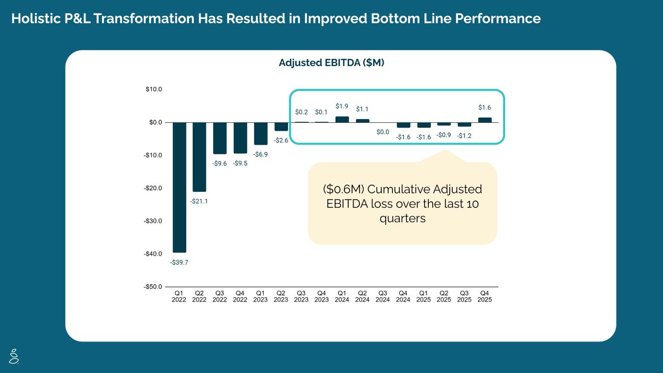 Holistic P&L Transformation Has Resulted in Improved Bottom Line Performance Adjusted EBITDA ($M) ($0.6M) Cumulative Adjusted EBITDA loss over the last 10 quarters