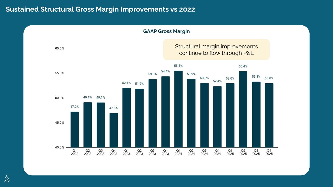 Sustained Structural Gross Margin Improvements vs 2022 GAAP Gross Margin Structural margin improvements continue to flow through P&L